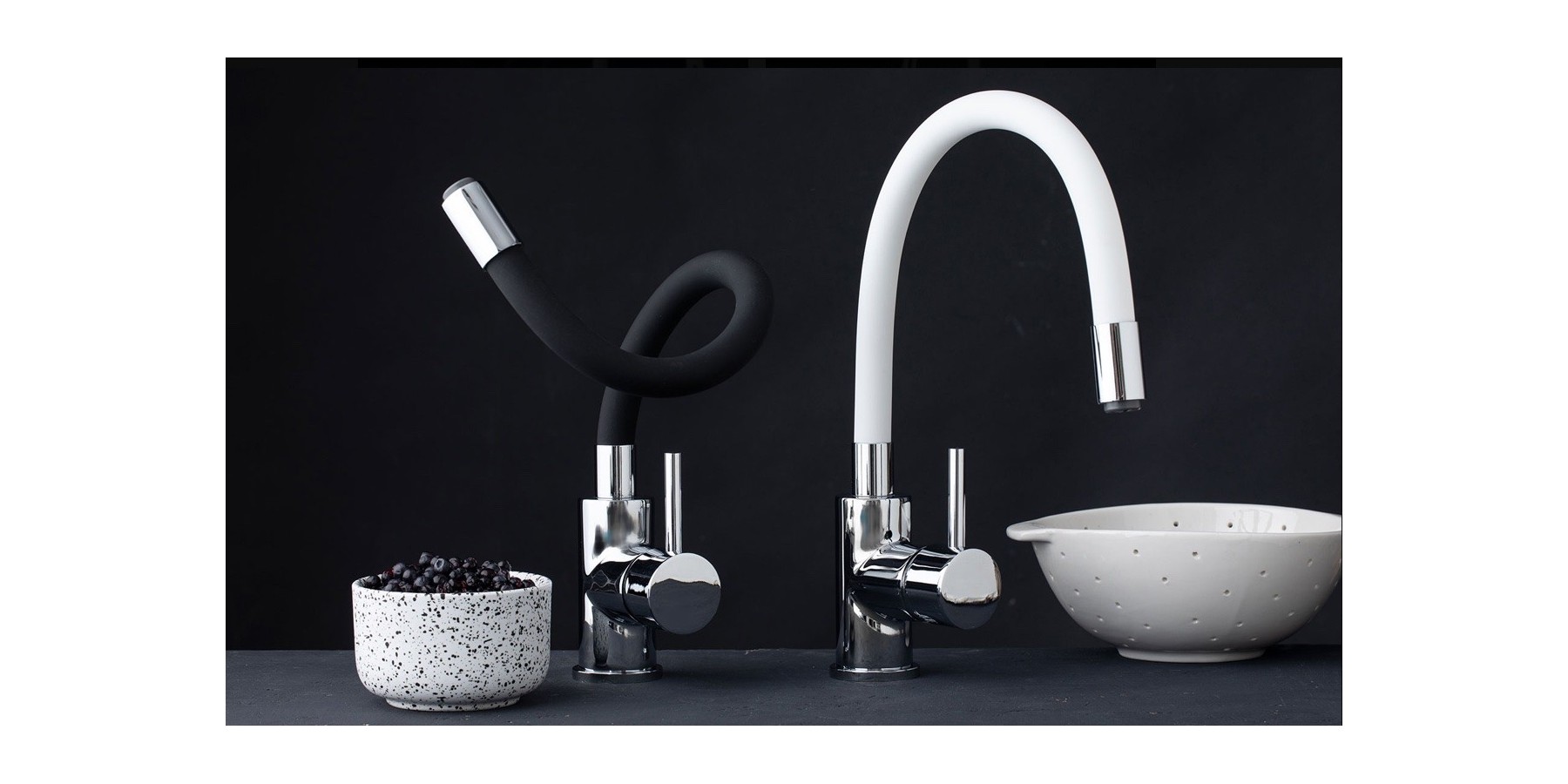 Er ist sowohl für Ein- als auch für Doppelbecken geeignet und ist auch in der Ausführung mit schwarzem Schlauch oder mit mattschwarzer Basis erhältlich.