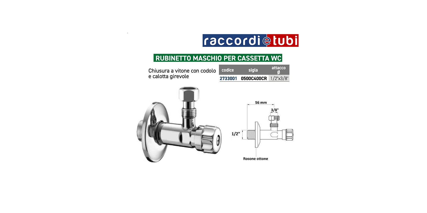 WASSERHAHN FÜR WC-SPÜLKASTEN 1/2'' MÄNNLICH AUS VERCHROMTEM MESSING