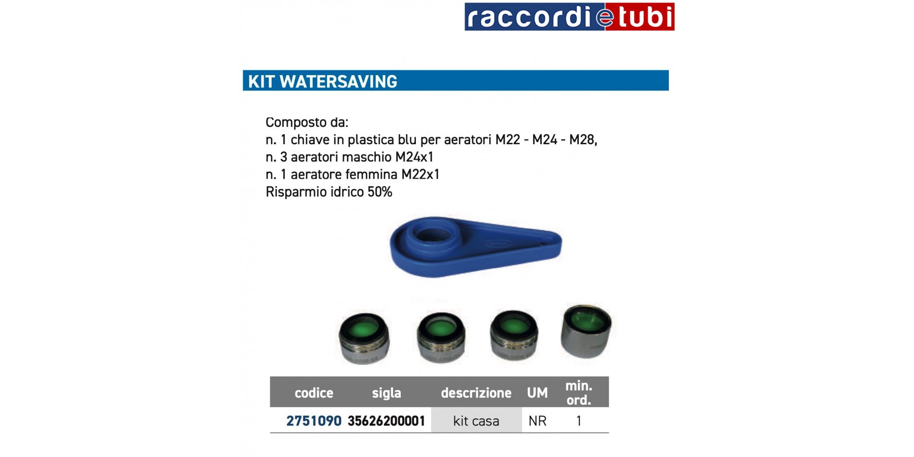 Nr. 1 blauer Kunststoffschlüssel für Perlatoren M22 - M24 - M28,