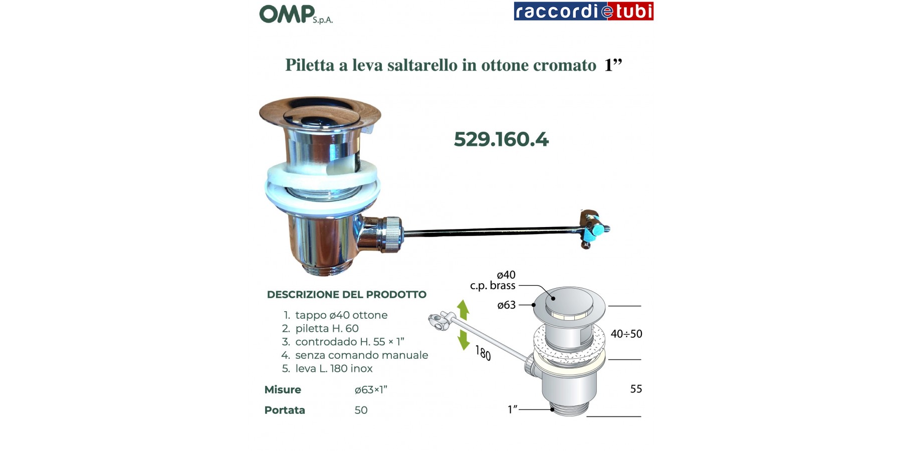 ABLAUFGARNITUR STOPFEN SCHWENKHEBEL D.1''x63mm