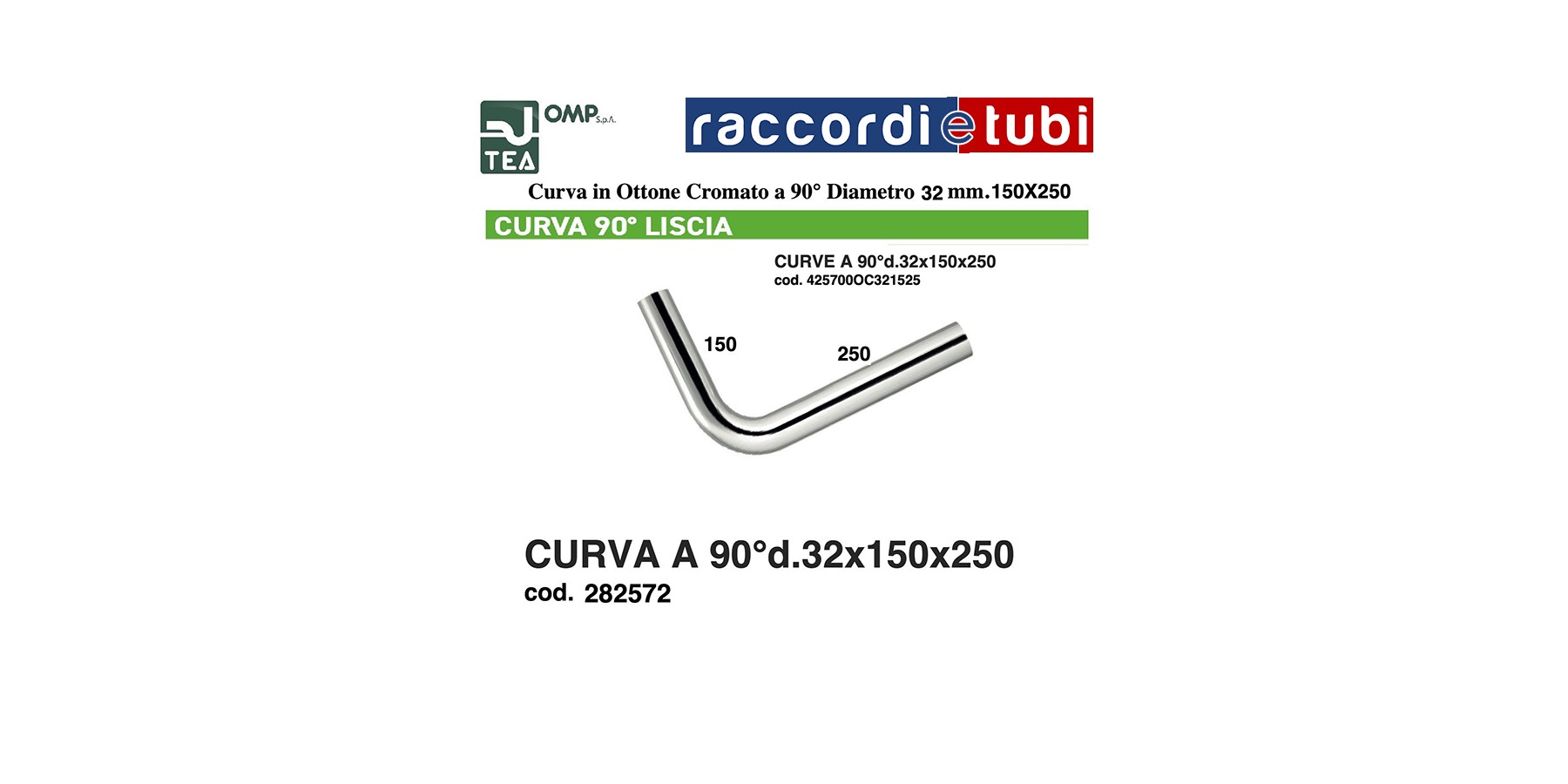 VERCHROMTES MESSINGROHR 90° D.32 150X300