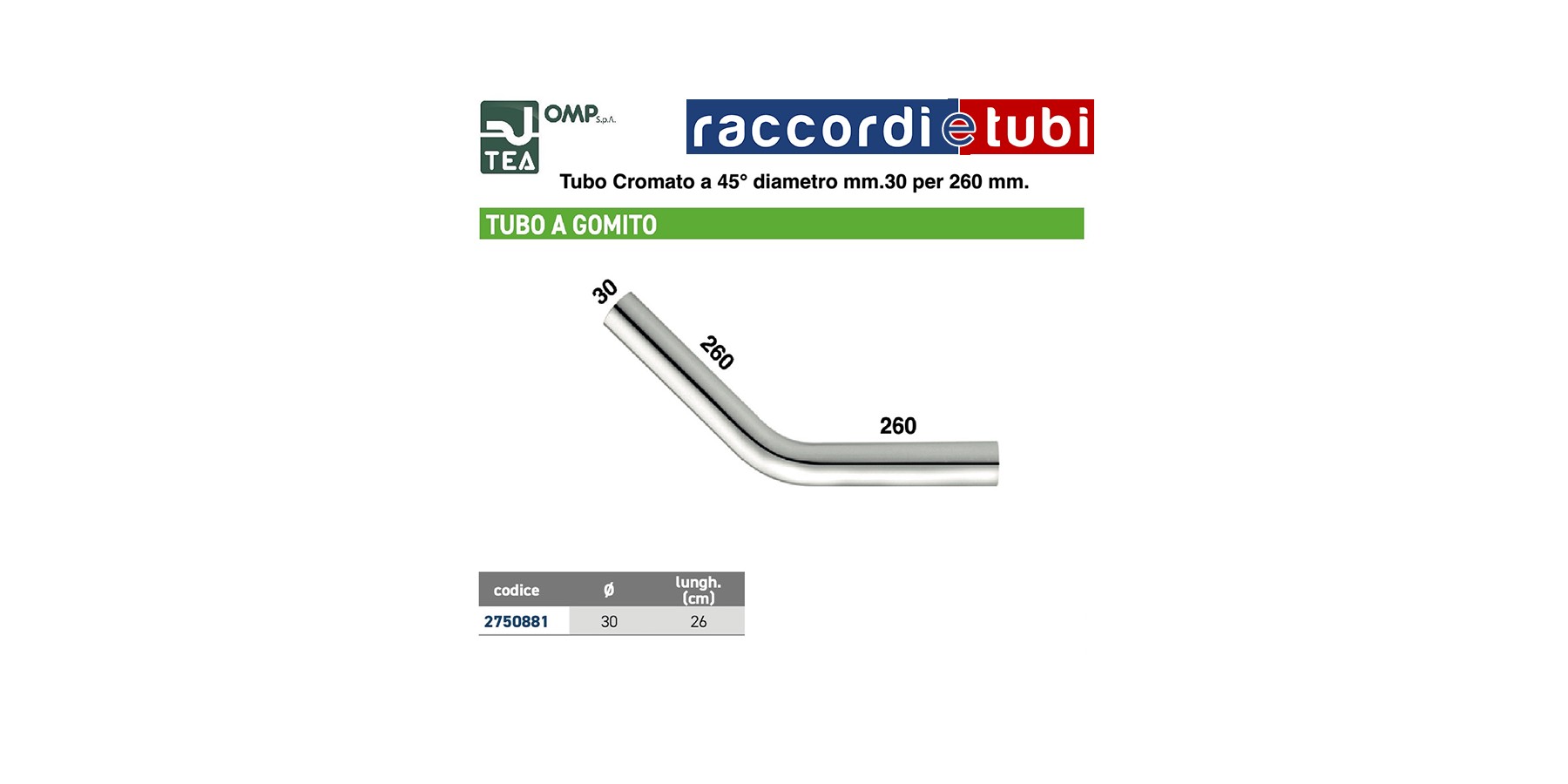 45° MESSINGROHR VERCHROMT DURCHMESSER 30mm LÄNGE 260mm