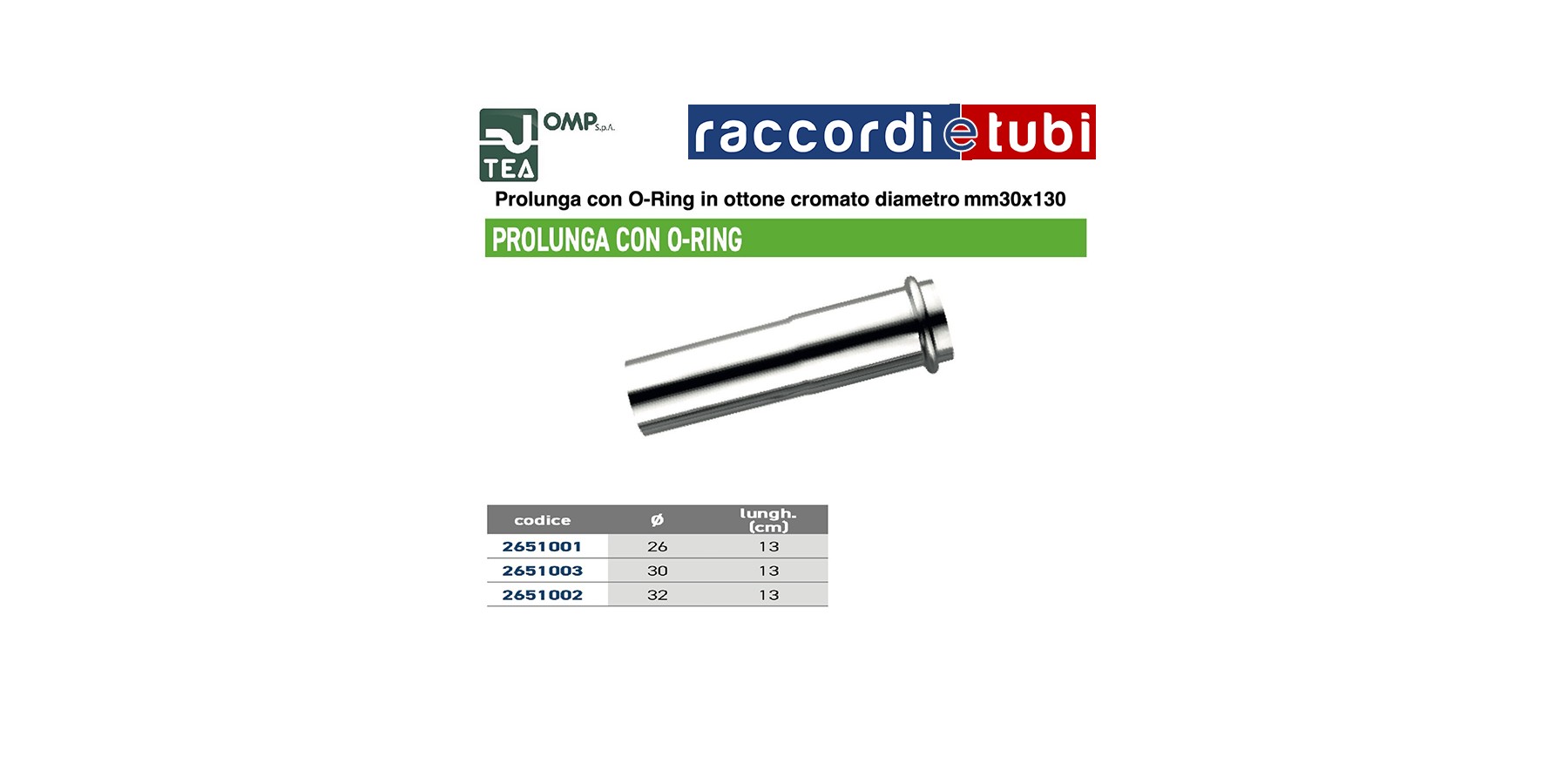 VERLÄNGERUNG AUS VERCHROMTEM MESSING 30X130mm MIT O-RING