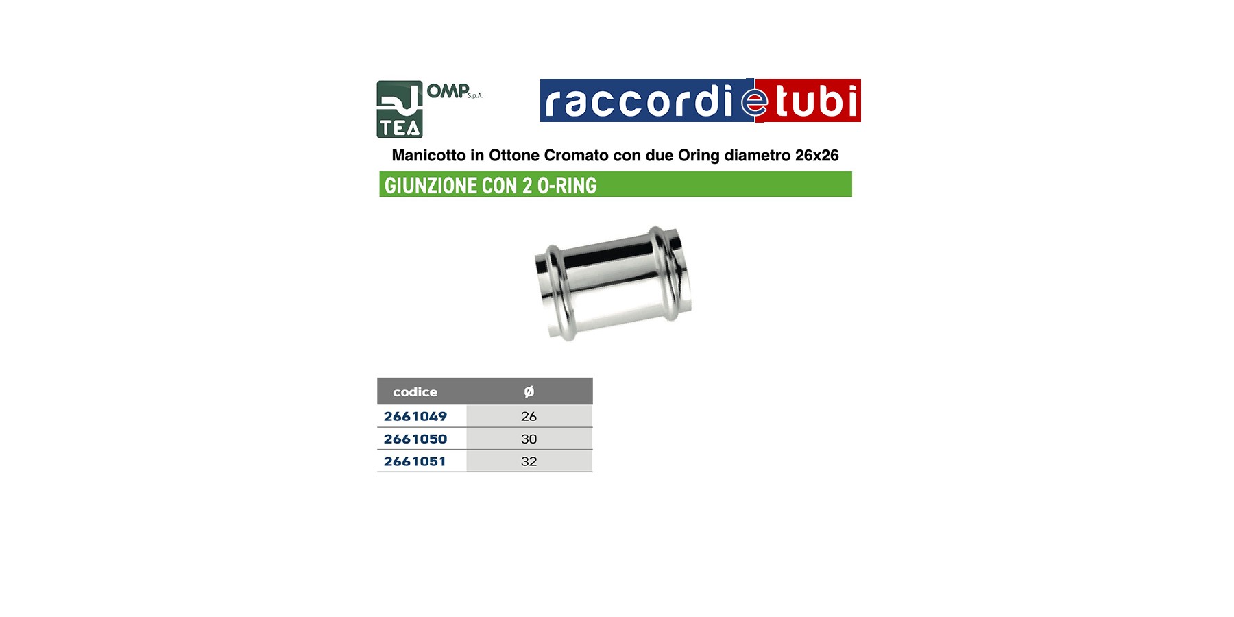 VERCHROMTES MESSINGHÜLSENROHR 26X26mm MIT O-RING