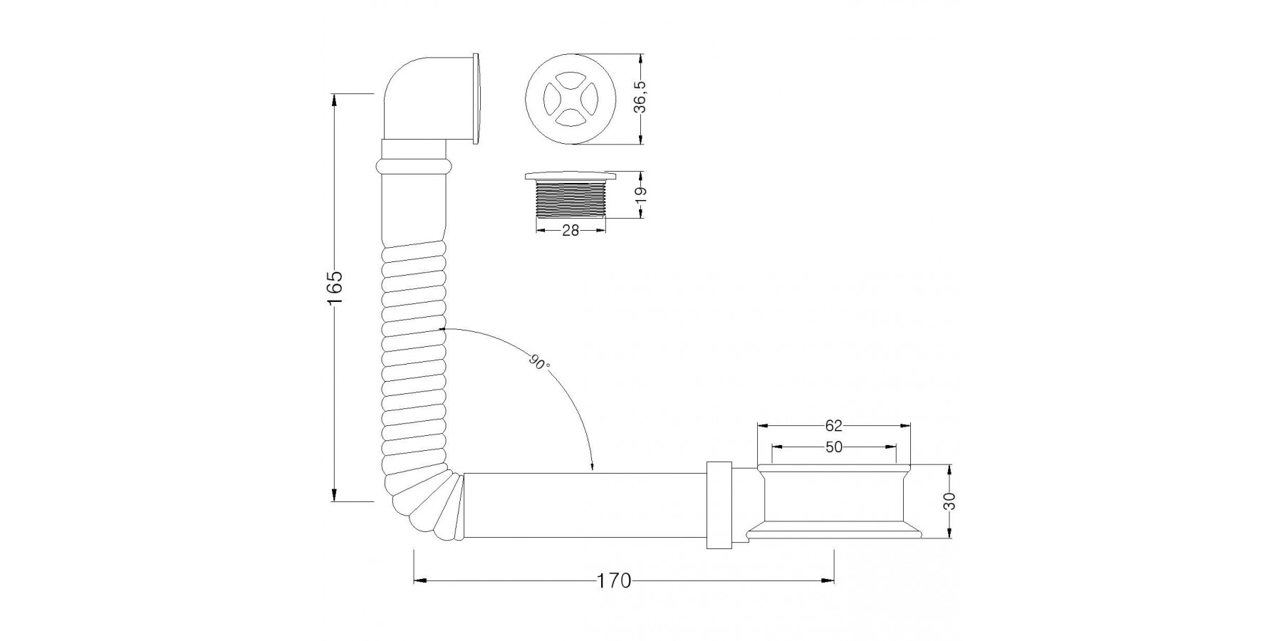 ÜBERLAUFSET FÜR WASCHBECKEN AUS VERCHROMTEM MESSING
