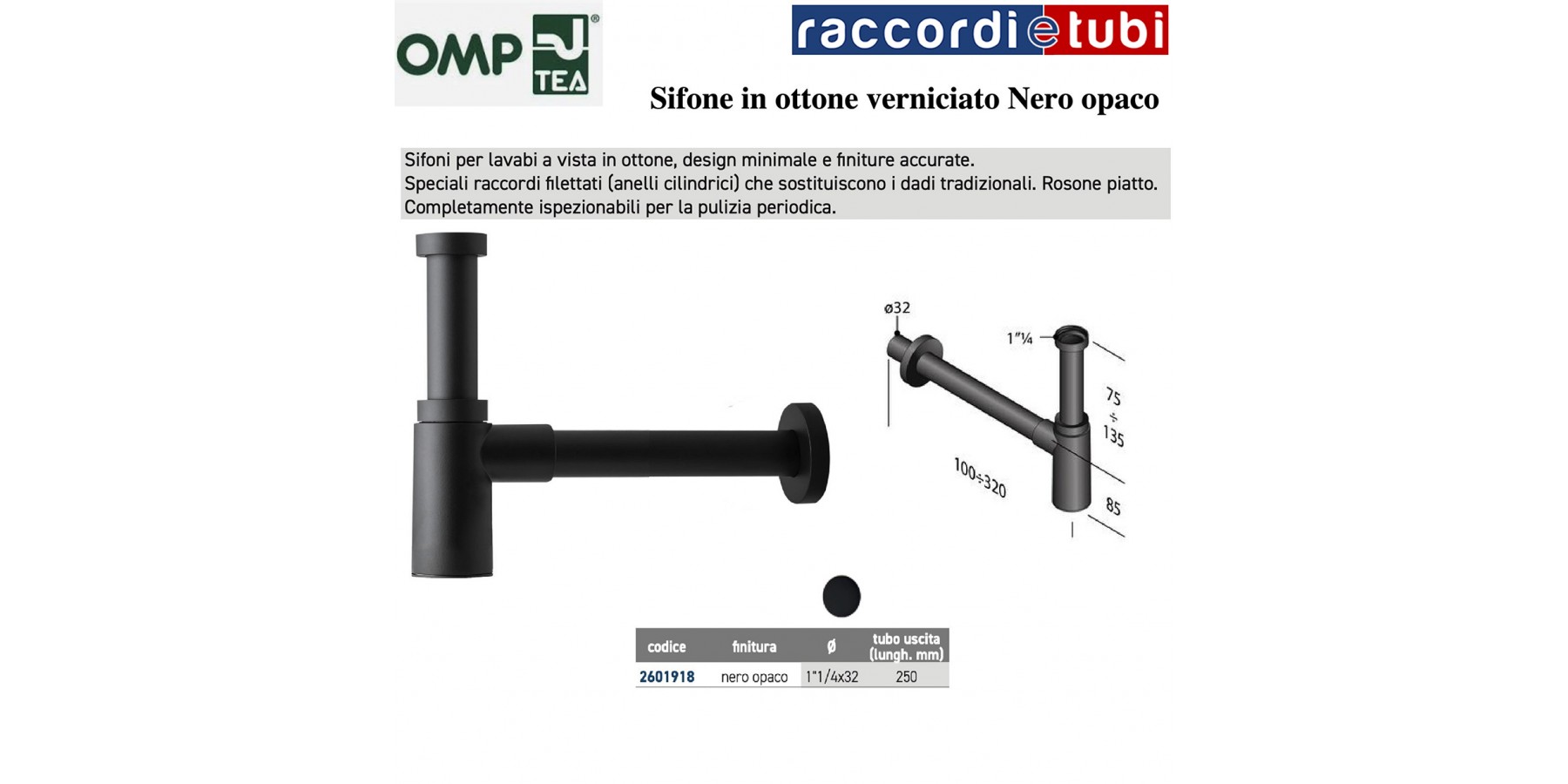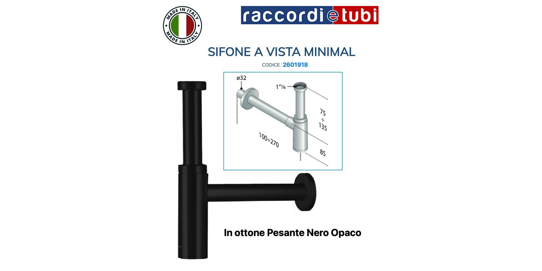 ZYLINDRISCHER MINIMALISTISCHER SIFON AUS SCHWEREM MATT SCHWARZEM MESSING 1.1/4X32