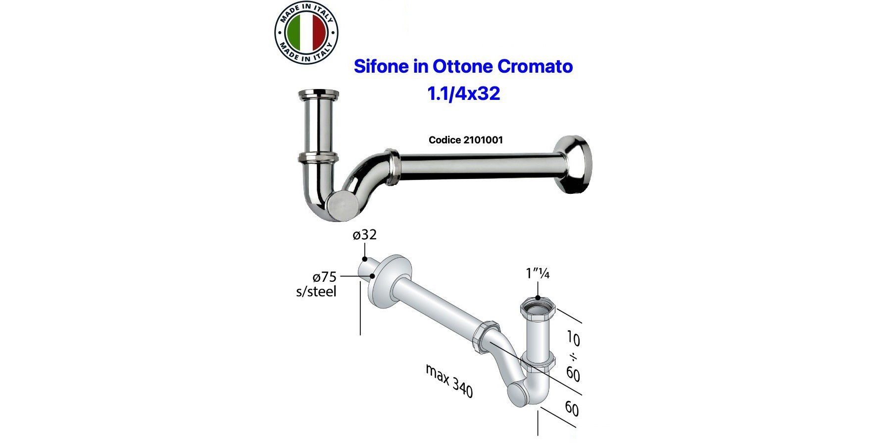SIFON LAVABO-BIDET A „S“ 1.1/4X32 AUS VERCHROMTEM MESSING