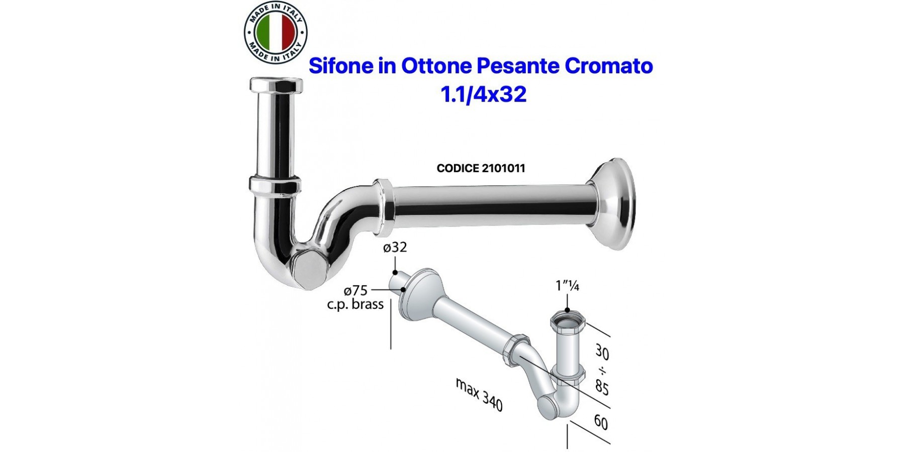 SIFON LAVABO-BIDET A "S" 1.1/4X32 AUS VERCHROMTEM MASSIVEM MESSING