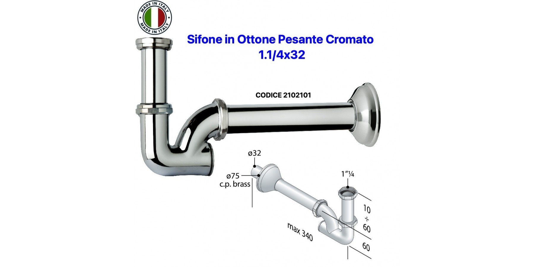 SIFON WASCHBECKEN-BIDET A "U" 1,1/4X32 AUS SCHWEREM VERCHROMTEM MESSING