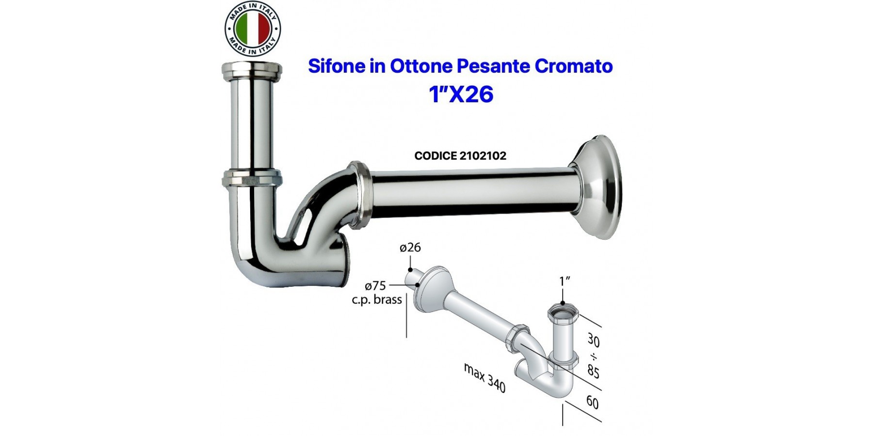 SIFON LAVABO-BIDET A "U" 1"X26 AUS SCHWEREM VERCHROMTEM MESSING