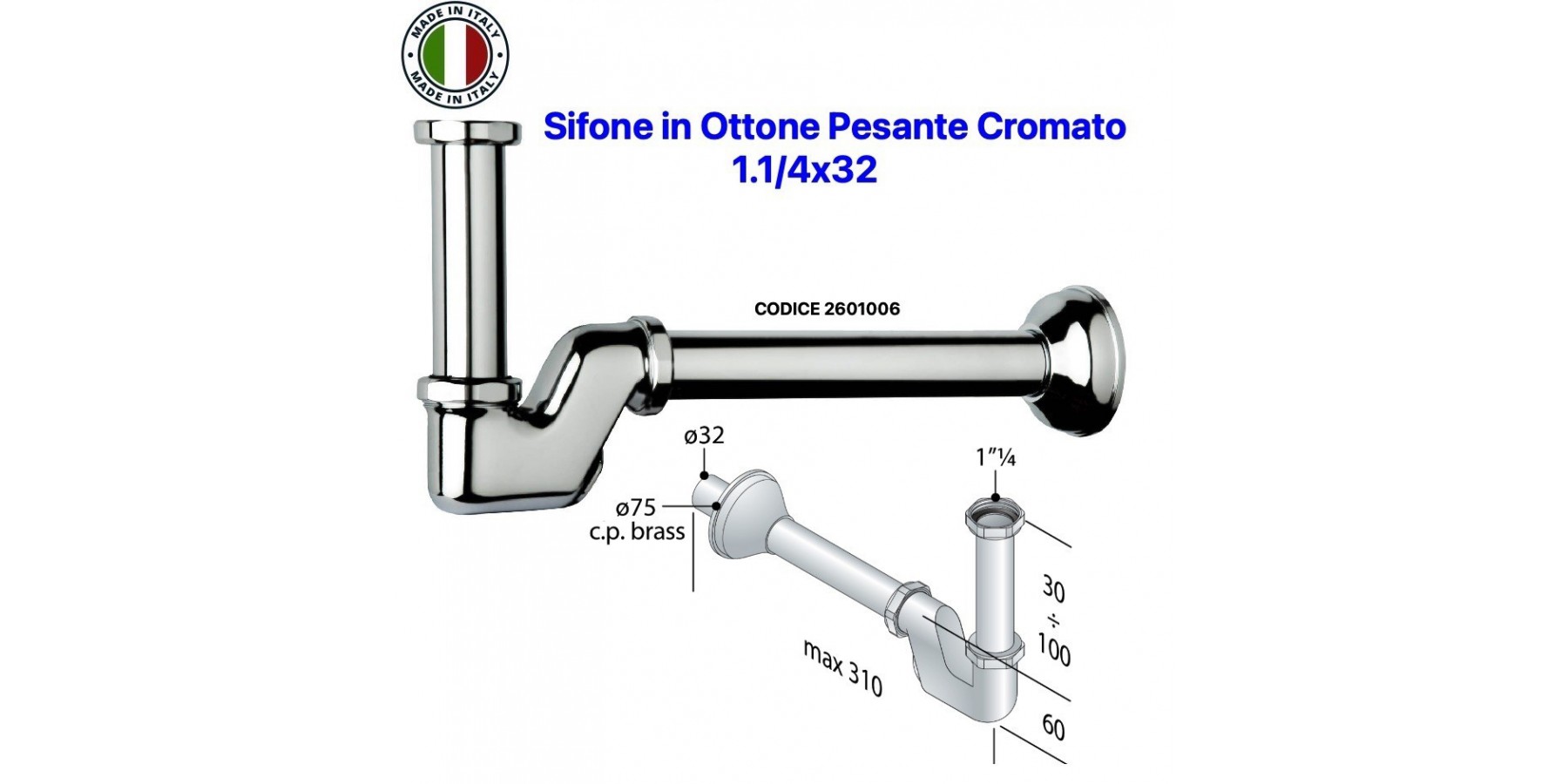 SIFON FÜR WASCHBECKEN-BIDET 1.1/4X32 AUS SCHWEREM VERCHROMTEM MESSING