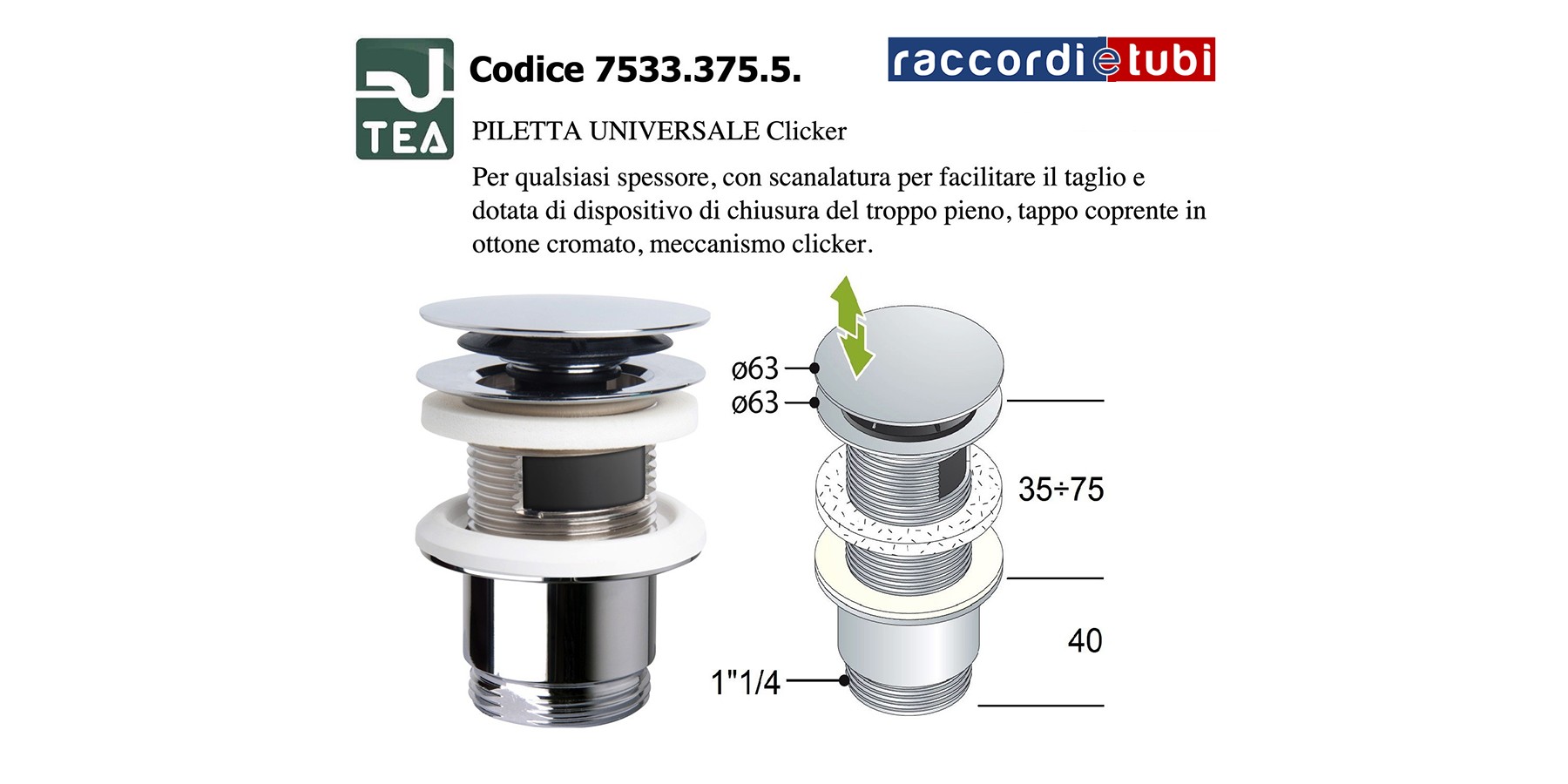 Für jede Dicke, mit Nut zur Erleichterung des Schneidens und ausgestattet mit Überlaufverschluss.