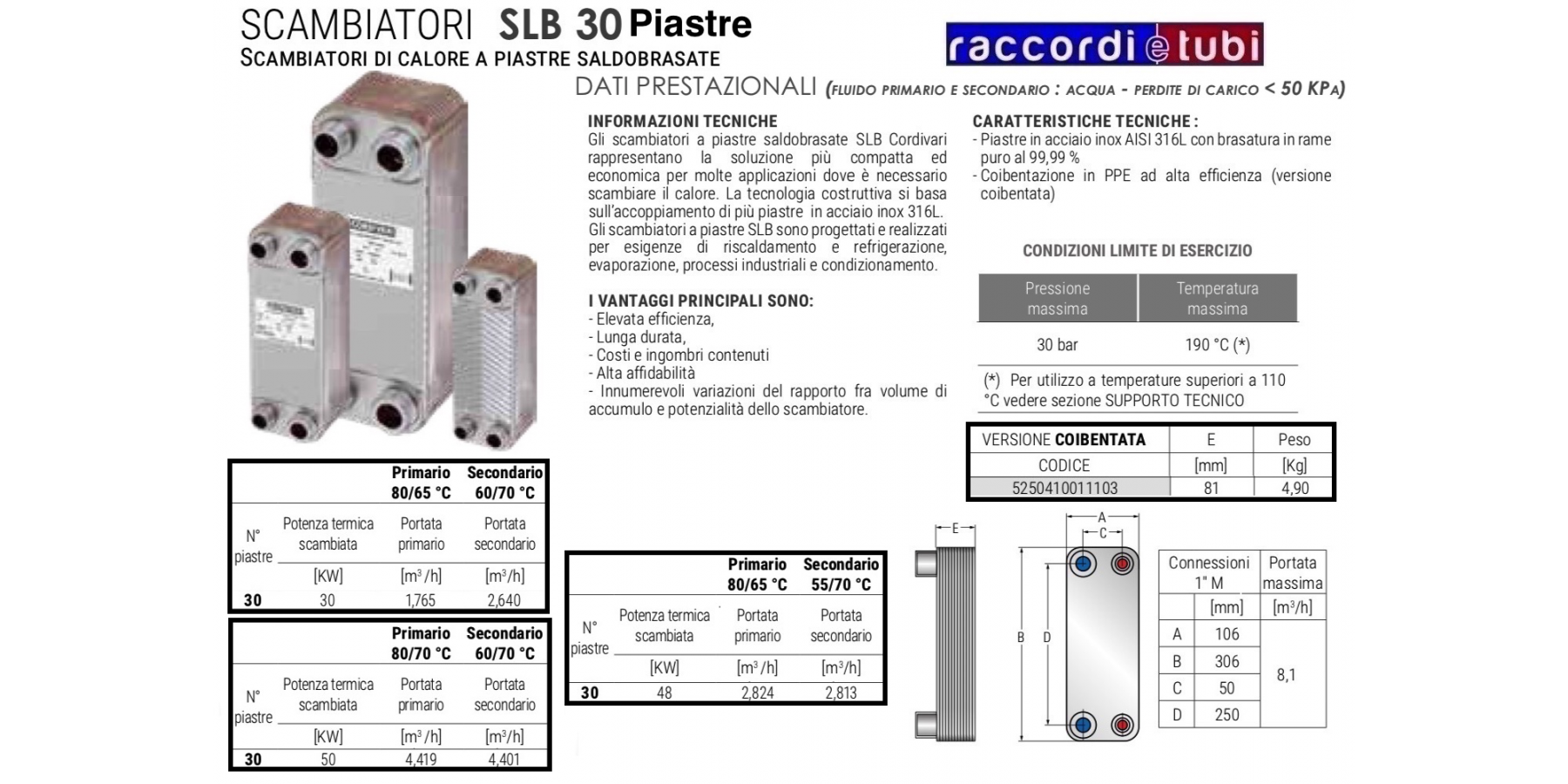 TECHNISCHE INFORMATIONEN Die gelöteten Plattenwärmetauscher SLB Cordivari stellen die kompakteste und wirtschaftlichste Lösung für viele Anwendungen dar, bei denen Wärme ausgetauscht werden muss. Die Konstruktion basiert auf der Verbindung mehrerer Platten aus Edelstahl 316L. Die SLB Plattenwärmetauscher sind für Heizungs- und Kühlungsanforderungen, Verdampfung, industrielle Prozesse und Klimatisierung ausgelegt und hergestellt. DIE HAUPTVORTEILE SIND: - Hohe Effizienz, - Lange Lebensdauer, - Geringe Kosten und Platzbedarf - Hohe Zuverlässigkeit - Zahlreiche Variationen im Verhältnis zwischen Speichervolumen und Leistung des Wärmetauschers.