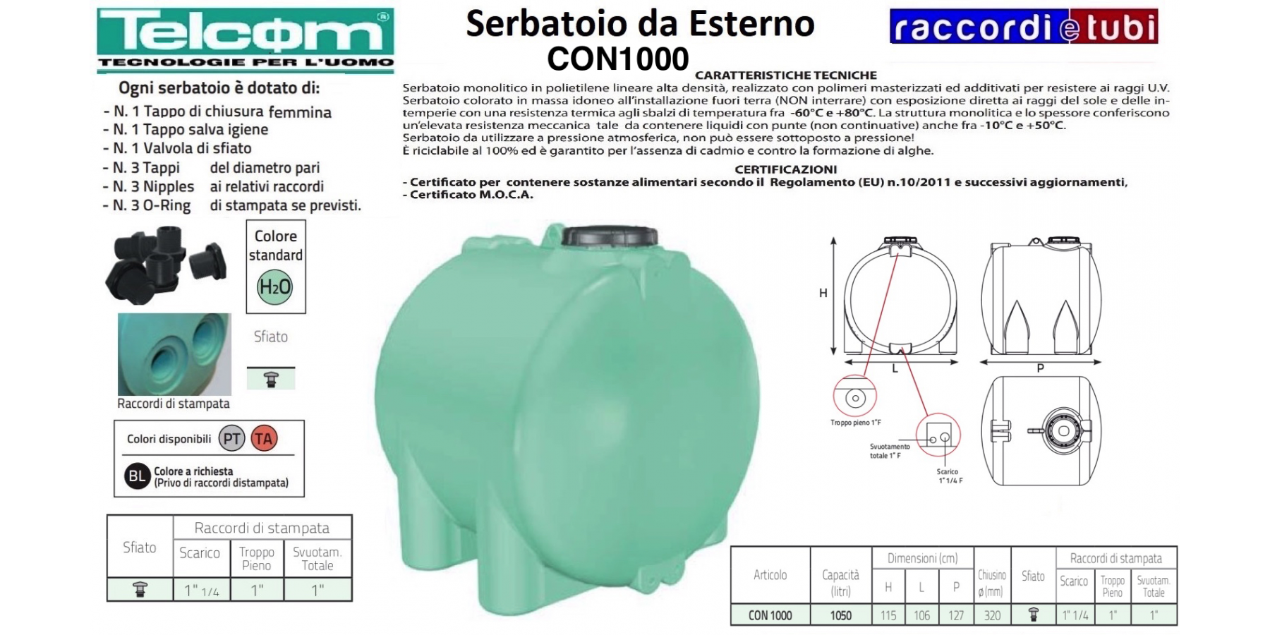 TRANSPORT Beim Transport dürfen die Tanks niemals geschleift werden, um Kratzer oder Abschürfungen zu vermeiden, die an diesen Stellen die Homogenität und Integrität beeinträchtigen könnten. Zudem dürfen die Tanks niemals voll bewegt werden. Beim Transport darf der Tank nicht gegen Kanten oder harte Gegenstände stoßen, da er trotz hoher Stoßfestigkeit durch unsichtbare Schäden beeinträchtigt werden könnte. Es wird außerdem empfohlen, die Tanks mit Textilgurten zu sichern, die den Tankkörper umfassen.