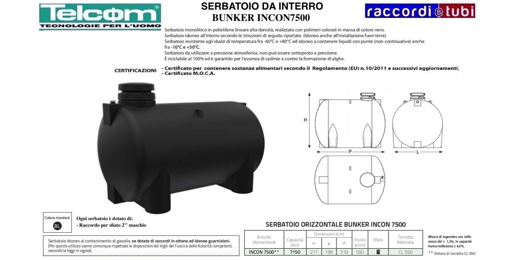 TRANSPORT Beim Transport dürfen die Tanks niemals geschleift werden, um Kratzer oder Beschädigungen zu vermeiden, die die Monolithizität und Integrität an dieser Stelle beeinträchtigen könnten. Bewegen Sie den Tank niemals, wenn er voll ist. Beim Transport den Tank niemals gegen Kanten oder harte Gegenstände stoßen, da er zwar sehr stoßfest ist, aber unsichtbare Schäden erleiden könnte. INSTALLATION Beim Anschluss der 'starren' Rohrleitungen an unsere Anschlussstücke (oder von Ihnen montierte oder von uns auf Ihre Anweisung geschweißte Anschlussstücke) ist es unbedingt erforderlich, flexible Schläuche mit einer Länge von mindestens dem Doppelten des Anschlussdurchmessers einzusetzen oder vorzugsweise ein Dehnungsstück, um zu vermeiden, dass die Anschlüsse durch die ständige Befüllung und Entleerung des Tanks beansprucht, gebogen oder gespannt werden. Wir weisen darauf hin, dass ein Dehnungsstück oder ein flexibler Schlauch immer zwischen zwei entsprechend dimensionierten festen Punkten platziert werden muss, die der axialen Kraft des Dehnungsstücks standhalten können und koaxial dazu ausgerichtet sind. Andernfalls könnten unmerkliche leichte Biegungen der Wände auftreten, die Schäden an den Anschlüssen und/oder am Tank selbst verursachen, wenn die oben genannten Vorsichtsmaßnahmen nicht beachtet werden. Darüber hinaus sind Unterstützungen vorzusehen, um zu verhindern, dass Gewicht und äußere Vibrationen auf die Tankanschlüsse wirken. Um eine perfekte Dichtung zwischen dem Gewinde des Anschlusses und dem des flexiblen Schlauchs zu gewährleisten, sind einige Lagen PTFE-Dichtband in angemessener Menge einzulegen, ohne beim Anziehen zu stark zu drücken. Abschließend die Verschlusskappe auf den Tank aufschrauben, ohne sie festzuziehen, und sicherstellen, dass das Entlüftungsventil (oder Entlüftungssystem) funktioniert, welches dazu dient, den Druck im Tank konstant zu halten.