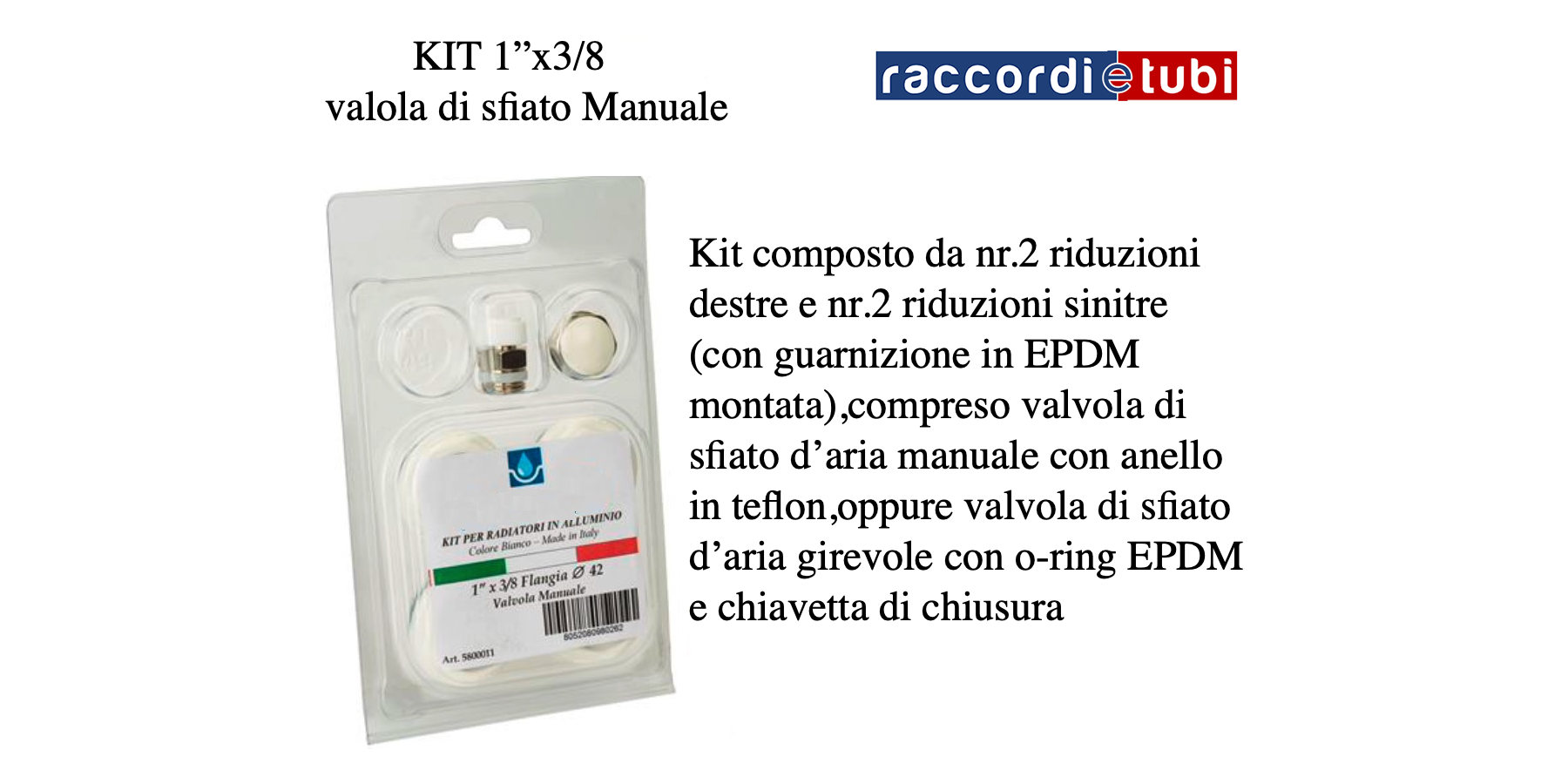 KIT bestehend aus vier Reduzierungen für ALUMINIUMHEIZKÖRPER Flansch mm.42 1''x3/8 Ral 9010 manuelle Entlüftung