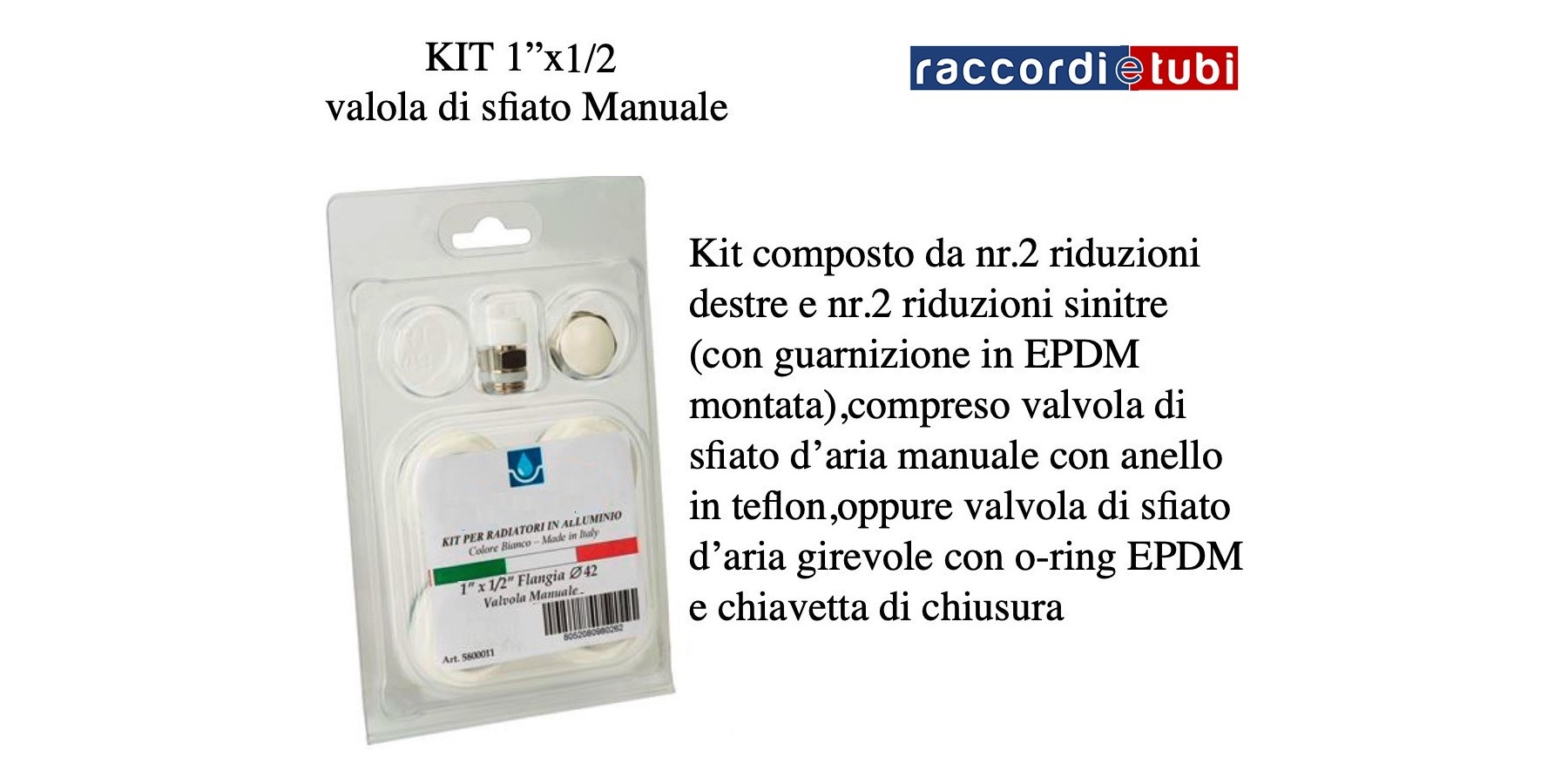 KIT bestehend aus vier Reduzierungen für ALUMINIUM RADIATOREN Flansch mm.42 1''x1/2 Ral 9010 mit manueller Entlüftung