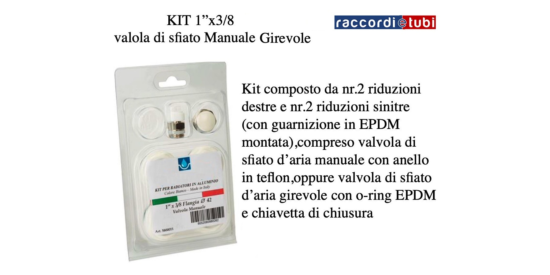 KIT bestehend aus vier Reduzierungen für ALUMINIUM-HEIZKÖRPER Flansch mm.42 1''x3/8 Ral 9010 drehbarer manuelle Entlüftung