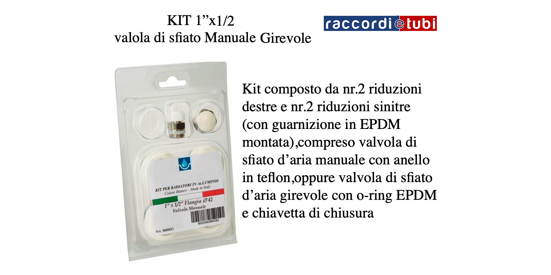 SET bestehend aus vier Reduzierungen für ALUMINIUM Heizkörper Flansch mm.42 1''x1/2 Ral 9010 manuelles drehbares Entlüftungsventil