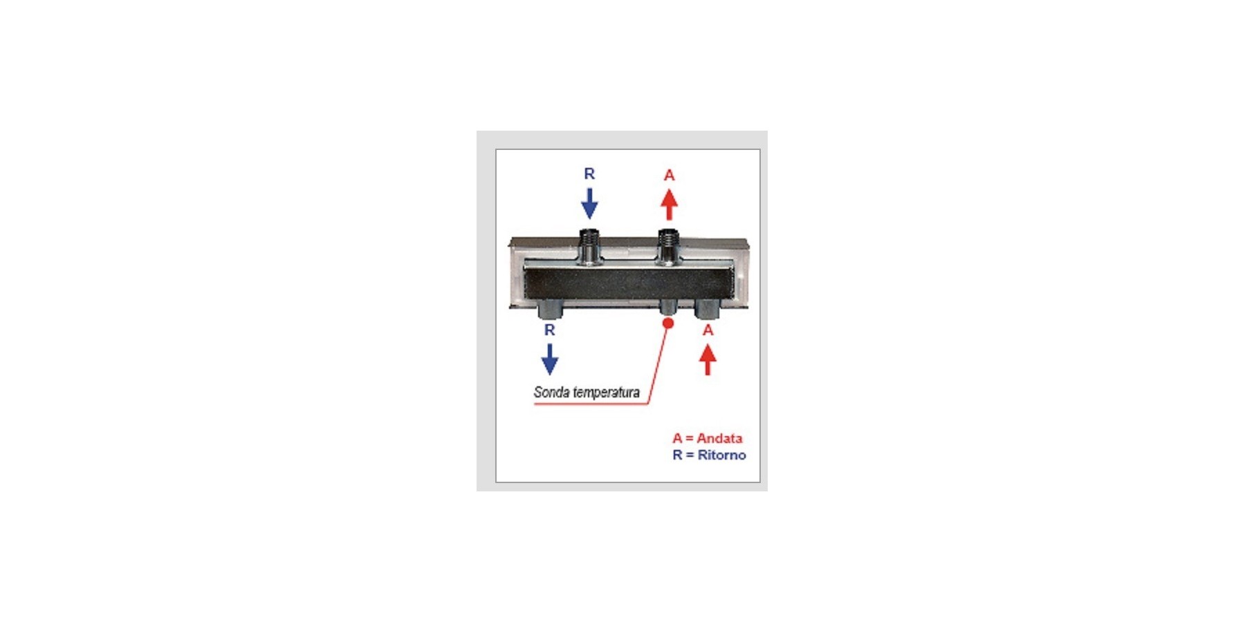 Isolierter hydraulischer Trenner zur Verbindung vor dem Verteiler. Dieses Gerät ermöglicht die hydraulische Trennung des Primärkreislaufs vom Sekundärkreislauf und sorgt für eine größere Volumenzirkulation am Verteiler, als im Kessel zirkuliert. Besonders empfohlen in Kombination mit Brennwertkesseln. Durch eine korrekte Einstellung des Kesselkreislaufes garantiert er eine niedrige Rücklauftemperatur (immer unter 57°C, die Kondensationstemperatur des Wasserdampfs im Erdgas) und steigert so die Effizienz der Anlage.