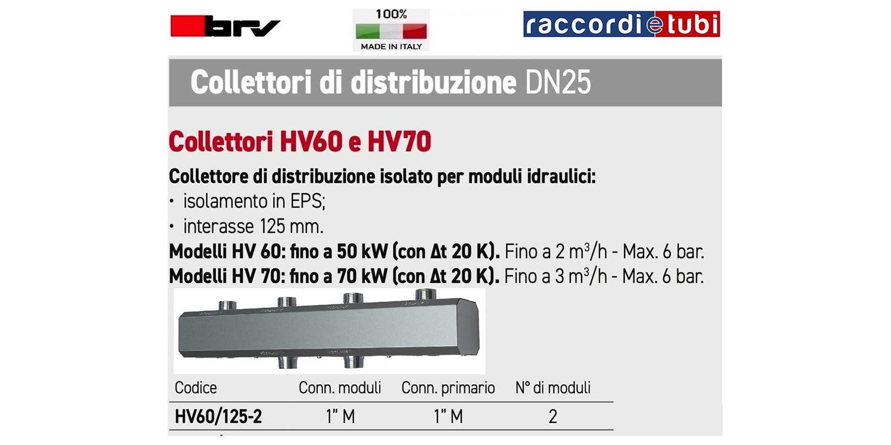 Sammler HV 60/125 (2 m3/h - 50 kW). Für 2 und 3 Module DN25.