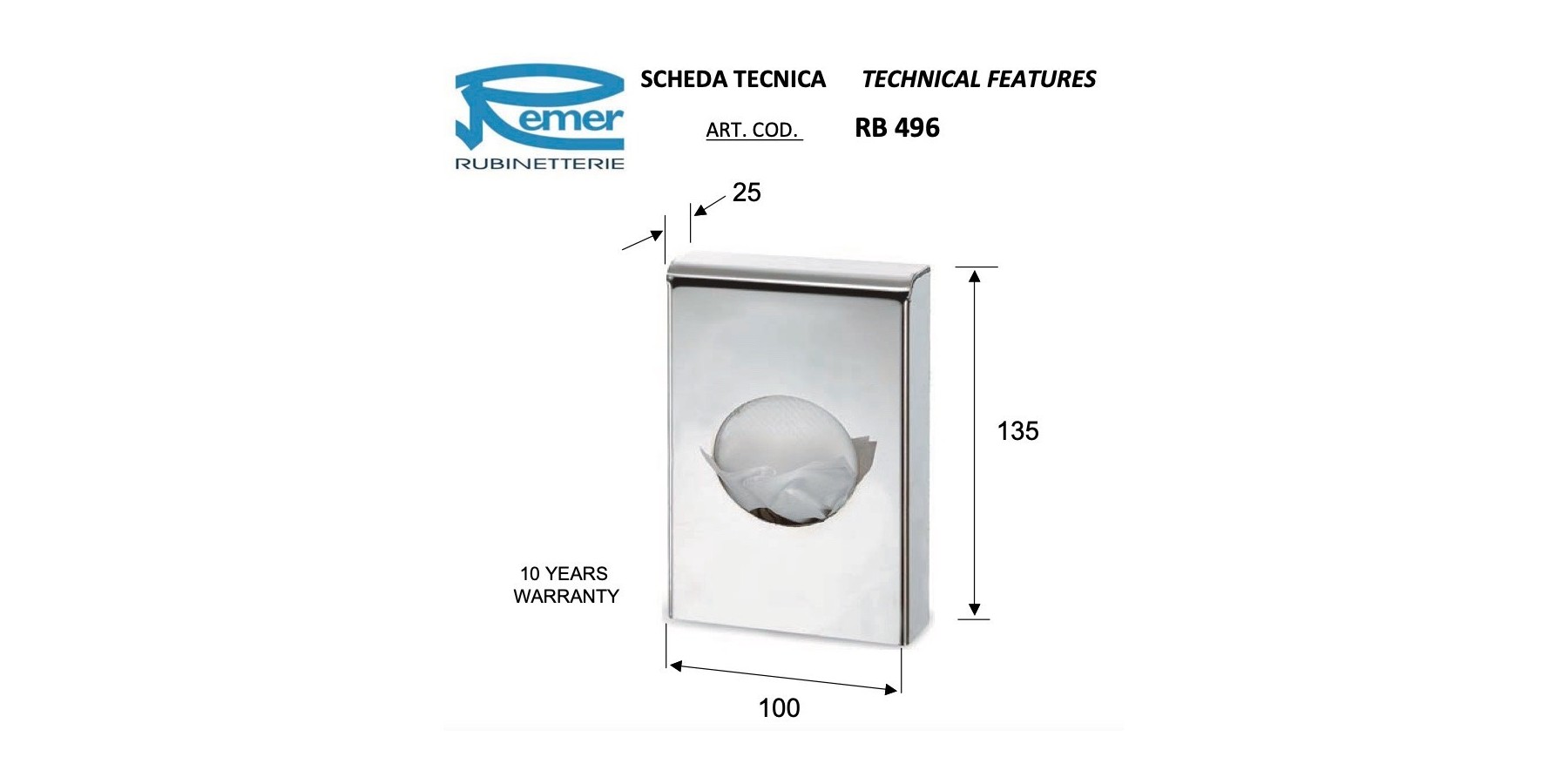 Il porta fazzoletti realizzato in ABS cromato è appositamente destinato per l'utilizzo in hotel, uffici, bagni, scuole ed ospedali. Il design, pur essendo semplice, risulta allo stesso tempo innovativo e si adatta perfettamente ad ogni tipo di arredamento. Remer, sinonimo di qualità e stile, dimostra la sua eccellenza attraverso la vasta rete di clienti acquisiti in tutto il mondo, in costante crescita.