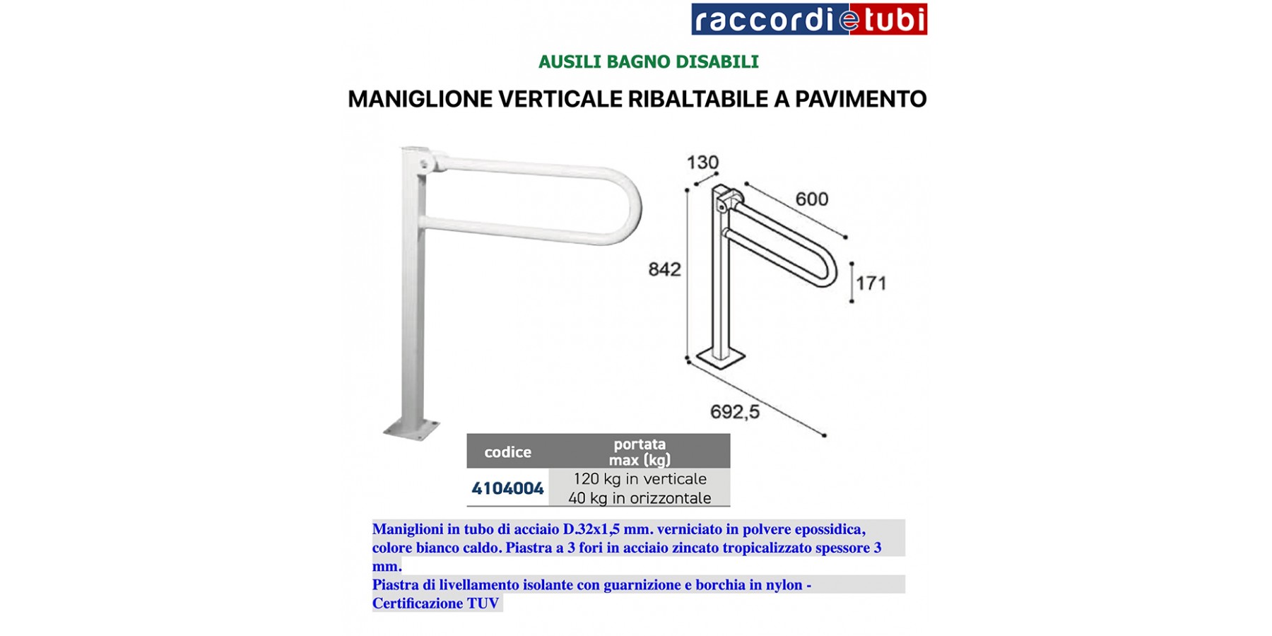 MANIGLIONE BARRA DI SOSTEGNO RIBALTABILE VERTICALE VERNICIATA BIANCA