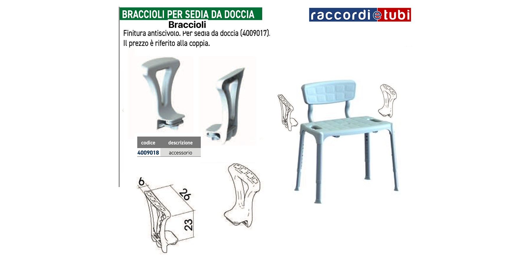 COPPIA BRACCIOLI ART.4009018 PER SEDIA DA DOCCIA CON SCHIENALE ART.4009017