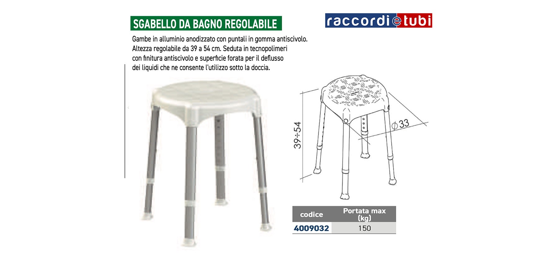 SGABELLO DA BAGNO TONDO REGOLABILE BIANCO 4009032