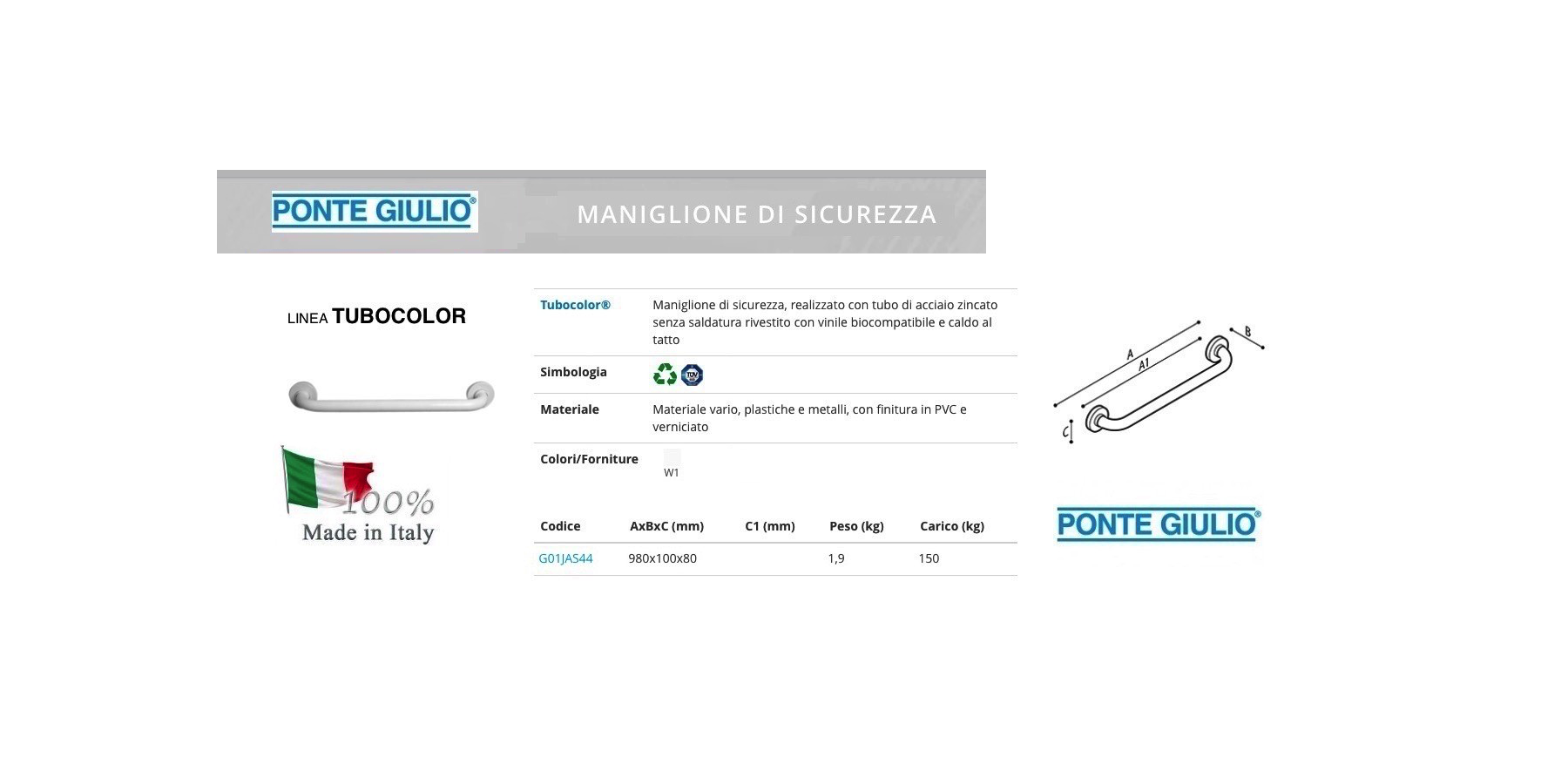 Maniglione di sicurezza lineare, realizzato con tubo di acciaio zincato senza saldatura rivestito con vinile biocompatibile caldo al tatto