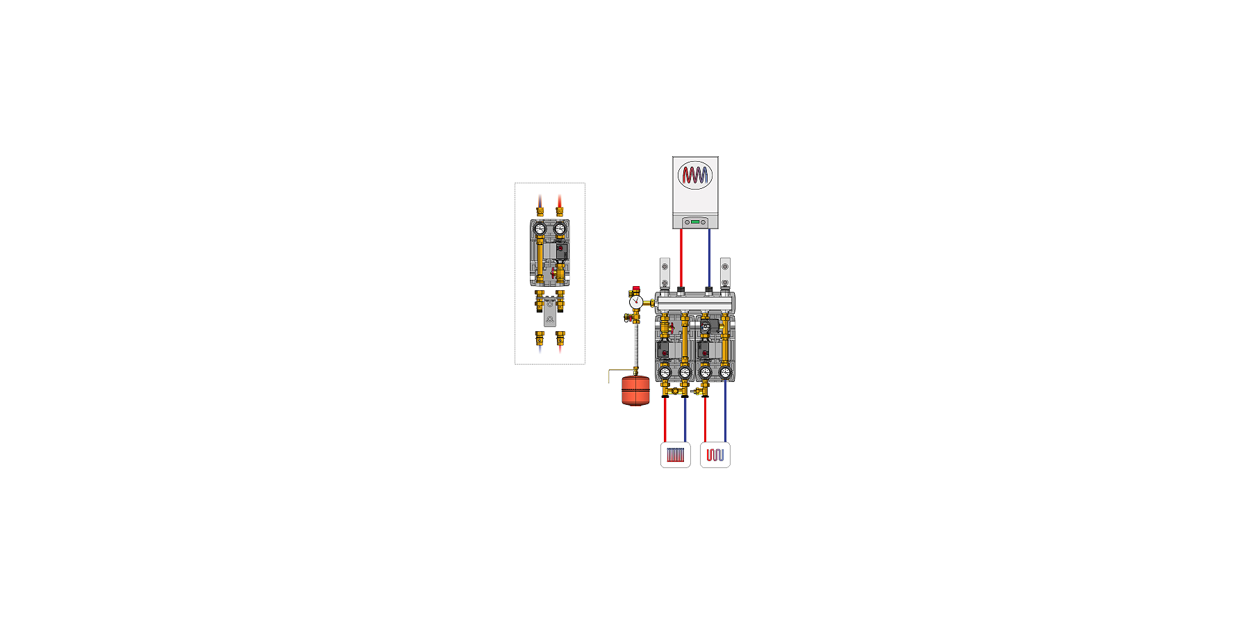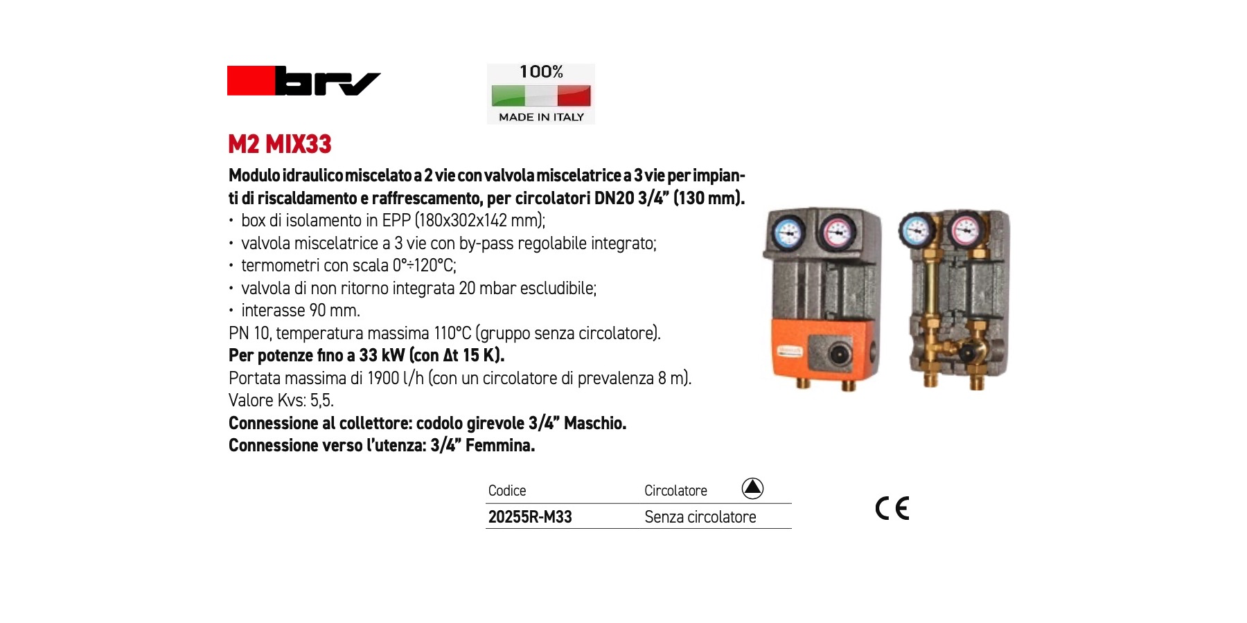 Modulo idraulico miscelato a 2 vie con valvola miscelatrice a 3 vie per impianti