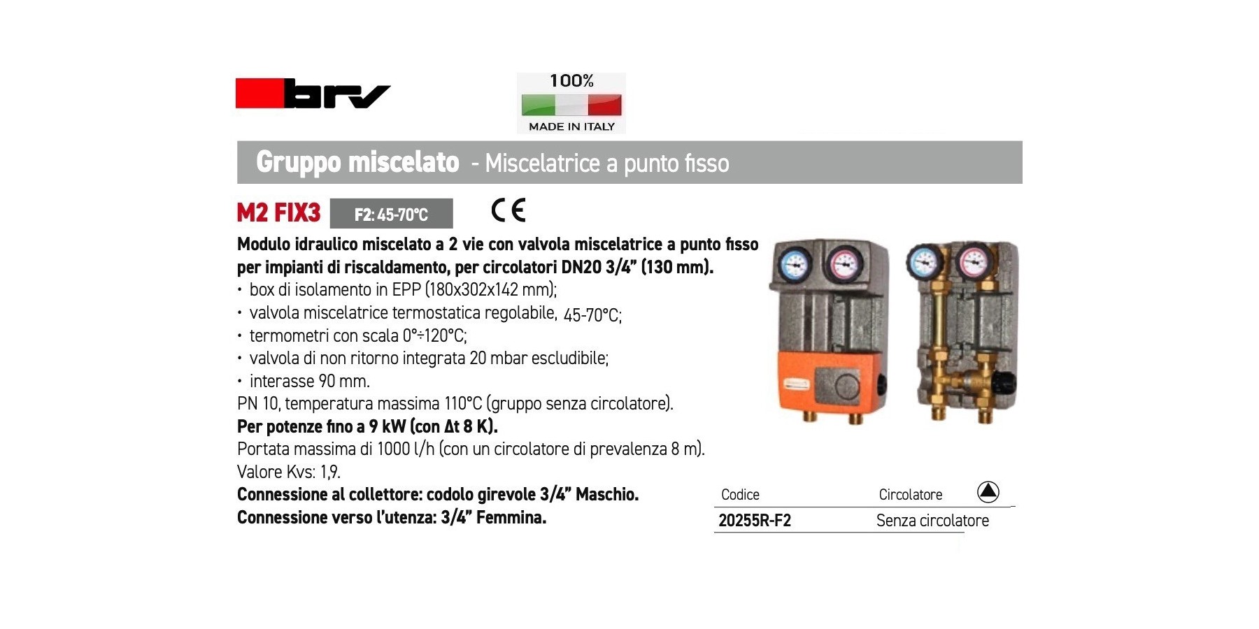 Modulo idraulico miscelato a 2 vie con valvola miscelatrice a punto fisso