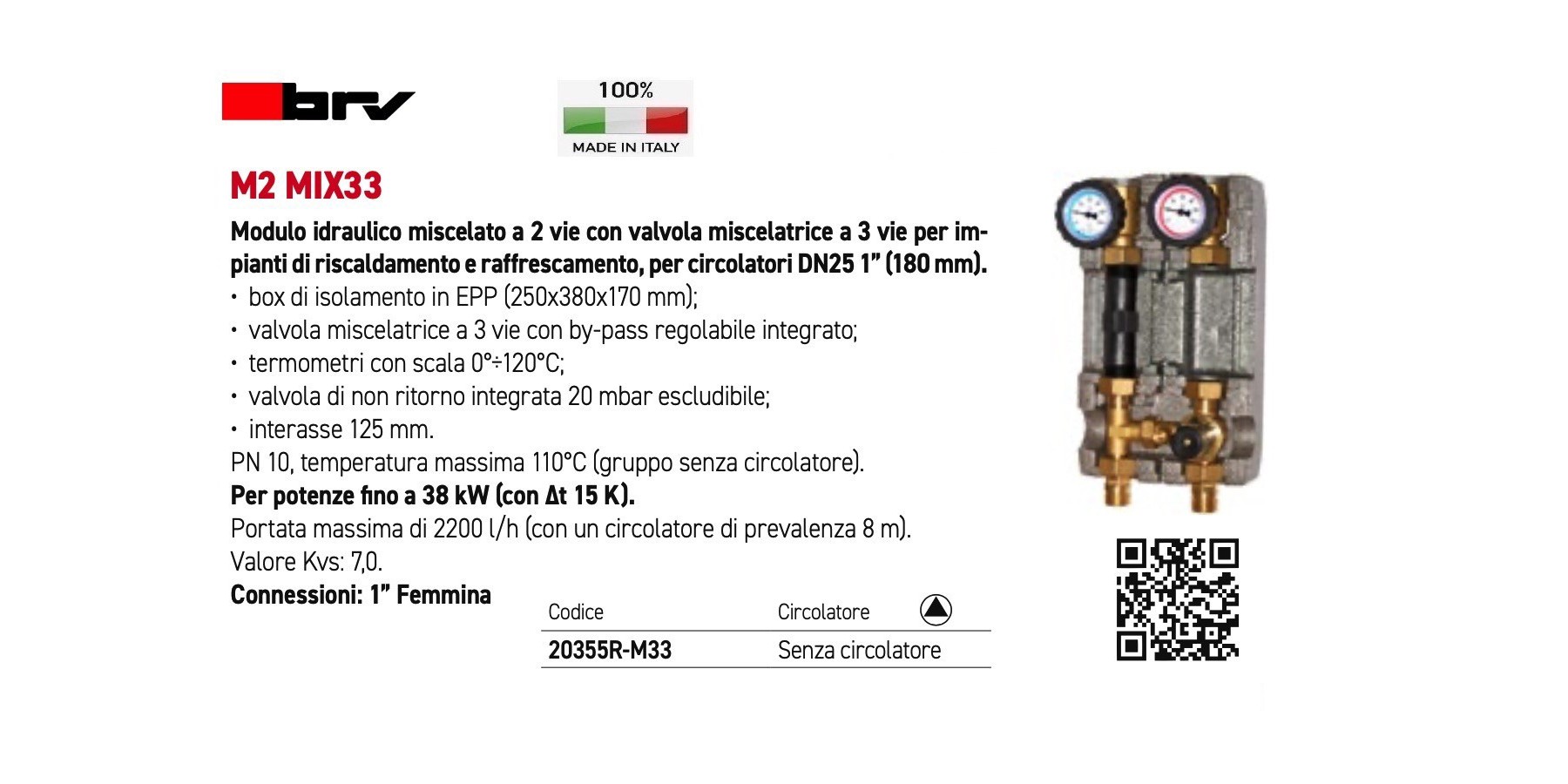 PN 10, temperatura massima 110°C (gruppo senza circolatore).