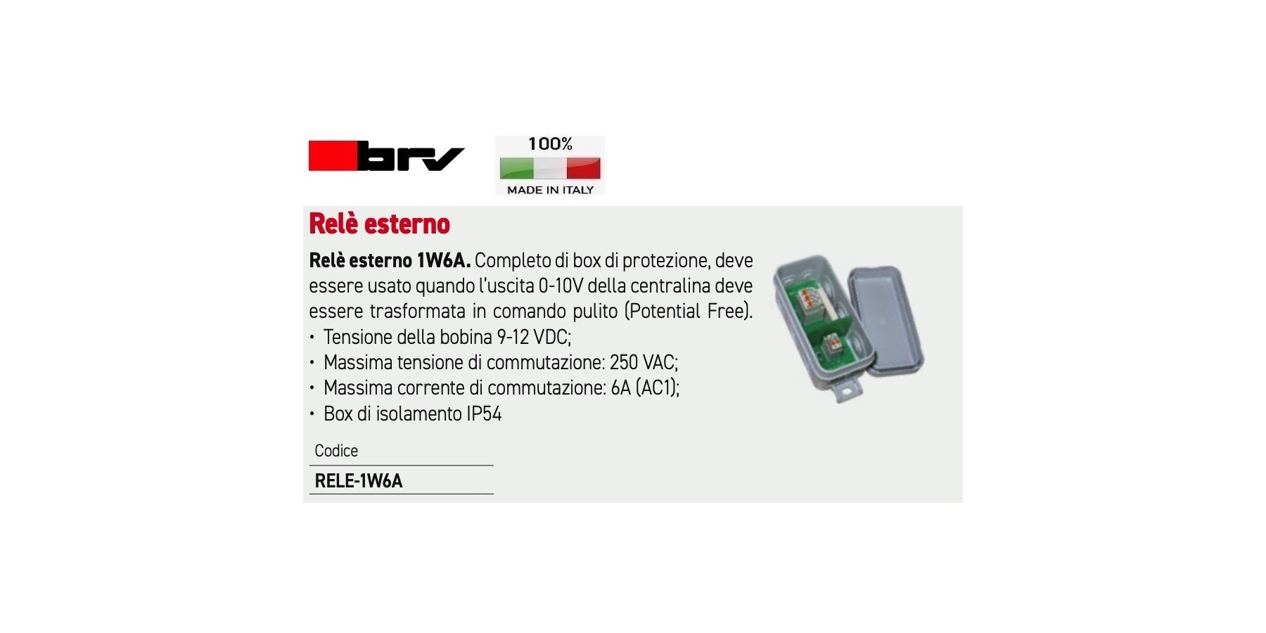 Relè esterno 1W6A. Completo di box di protezione, deve