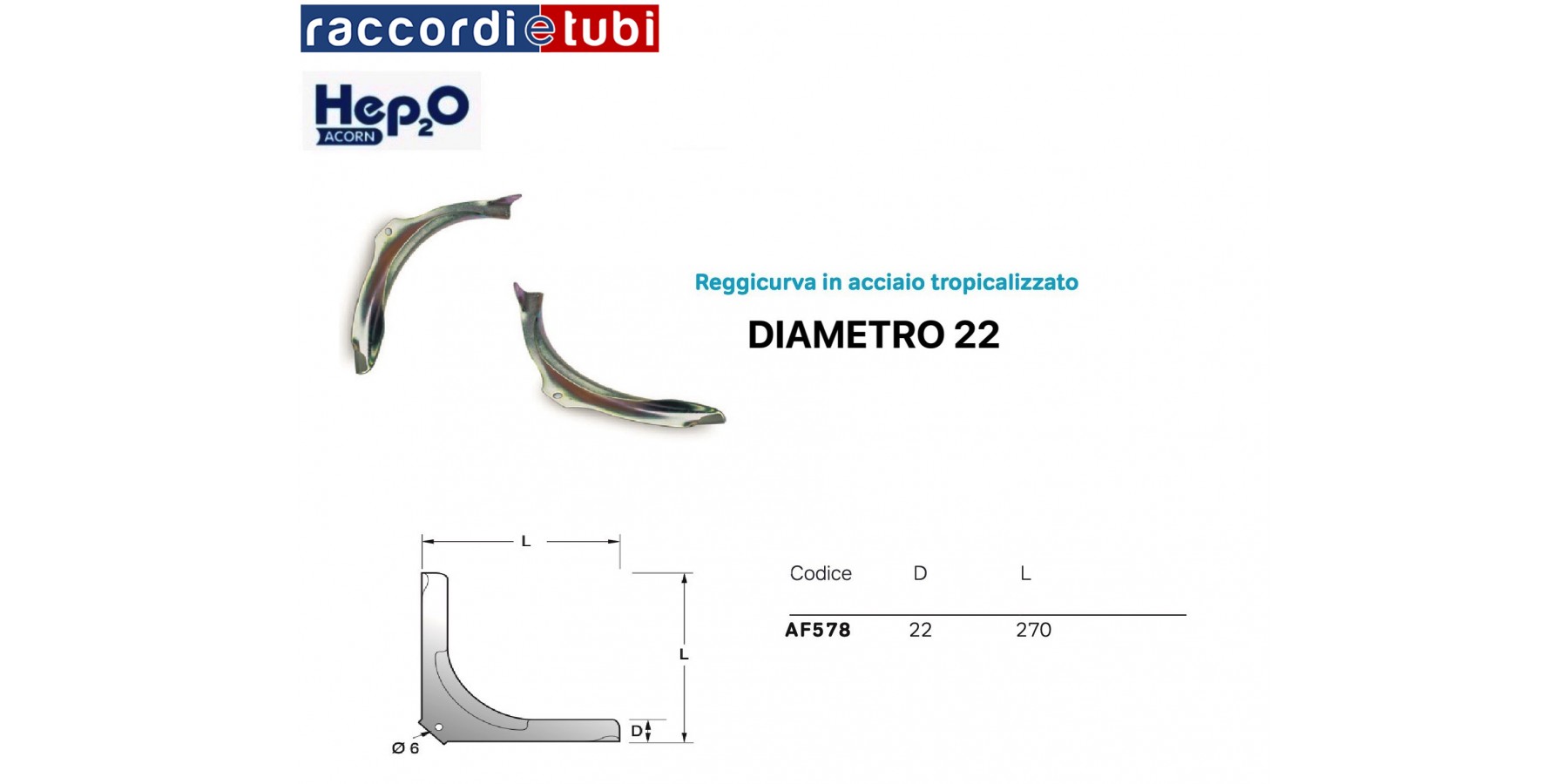 REGGICURVA ACORN DIAMETRO 22 IN ACCIAIO TROPICALIZZATO ART.AF578