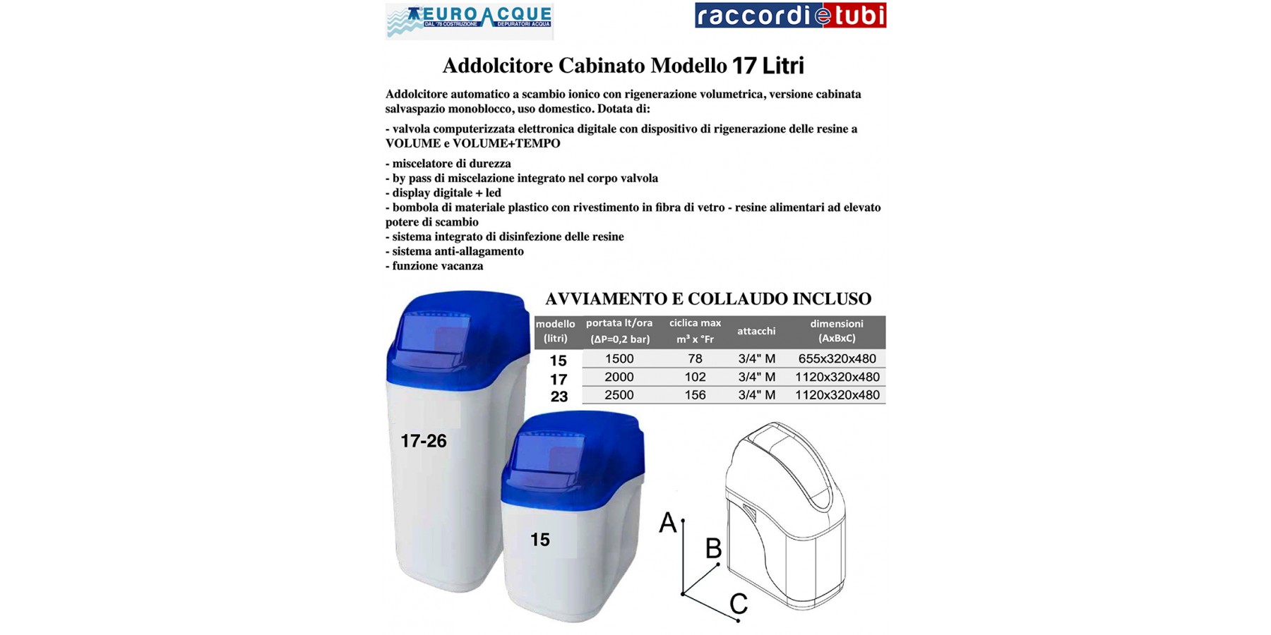 ADDOLCITORE EUROACQUE LITRI 17 CABINATO