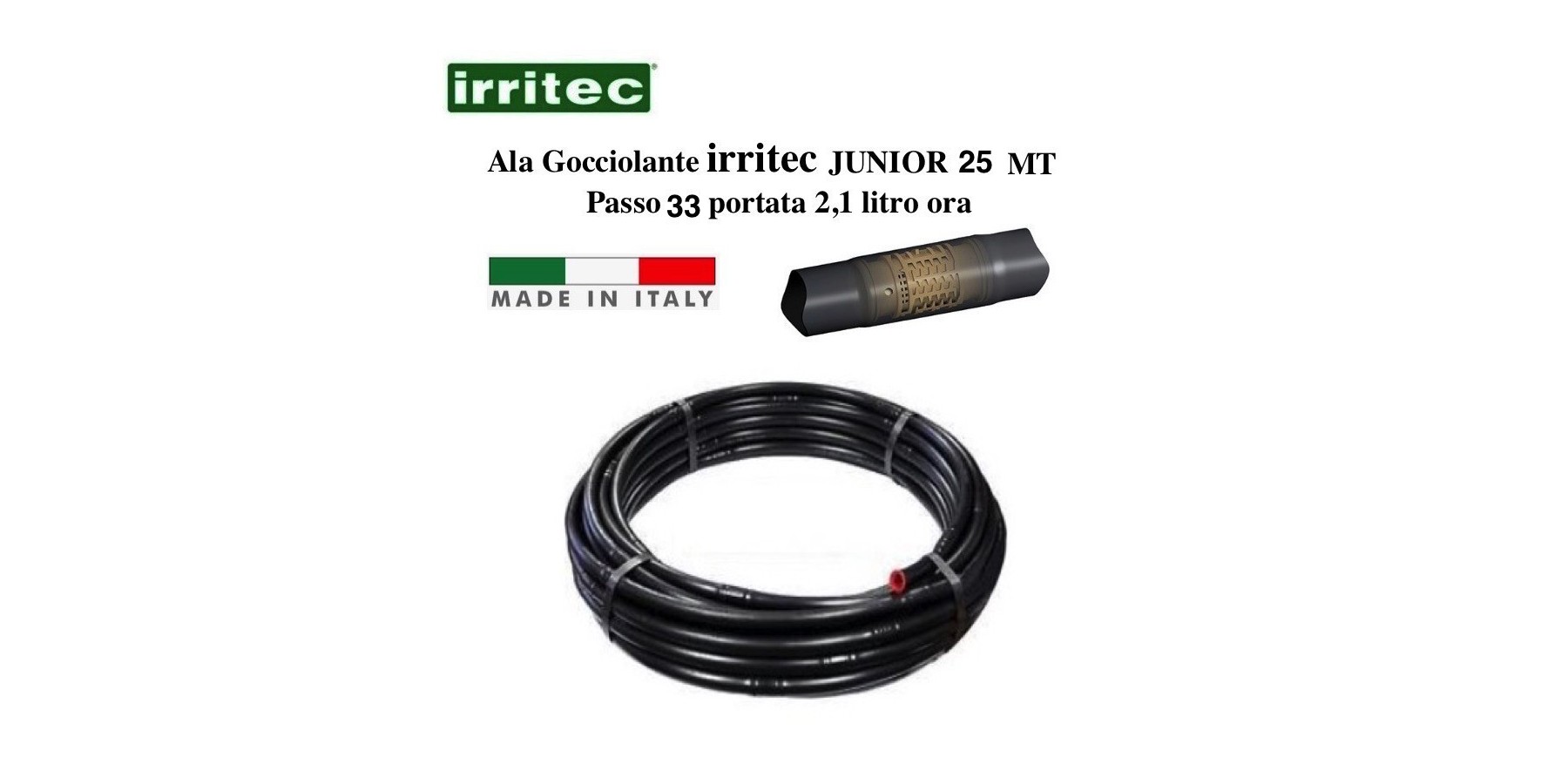 L'ala gocciolante pluristagionale Junior della Irritec è stata progettata per resistere allo stress termico, alle sollecitazioni meccaniche, agli agenti atmosferici.