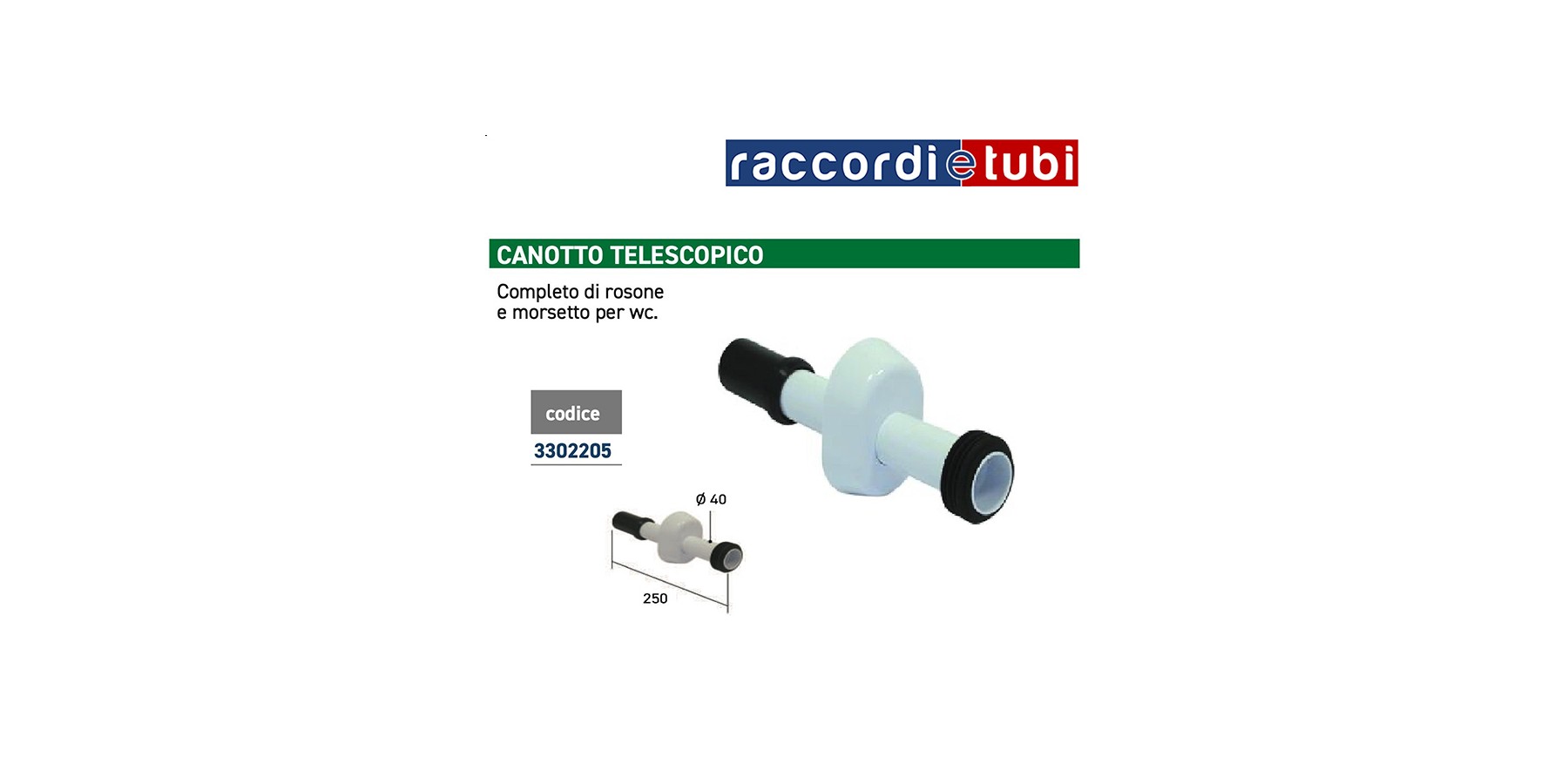 CANOTTO DRITTO CON ROSONE E MORSETTO PER ALLACCIO WC