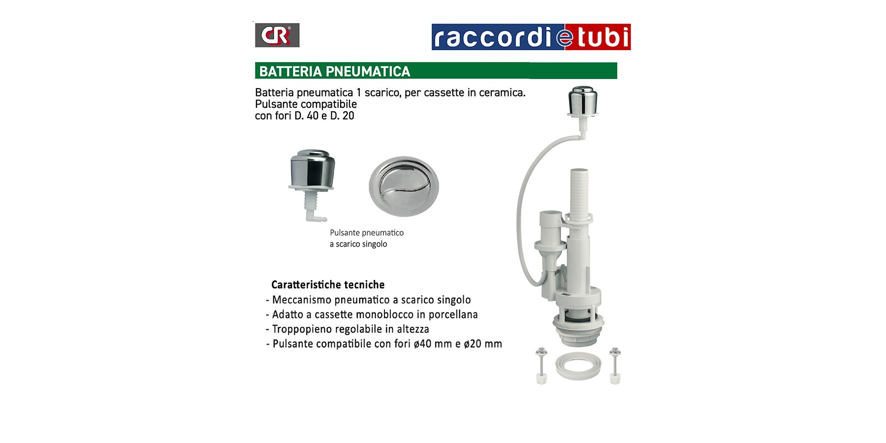 Batteria pneumatica 1 scarico, per cassette in ceramica. Pulsante compatibile con fori D. 40 e D. 20