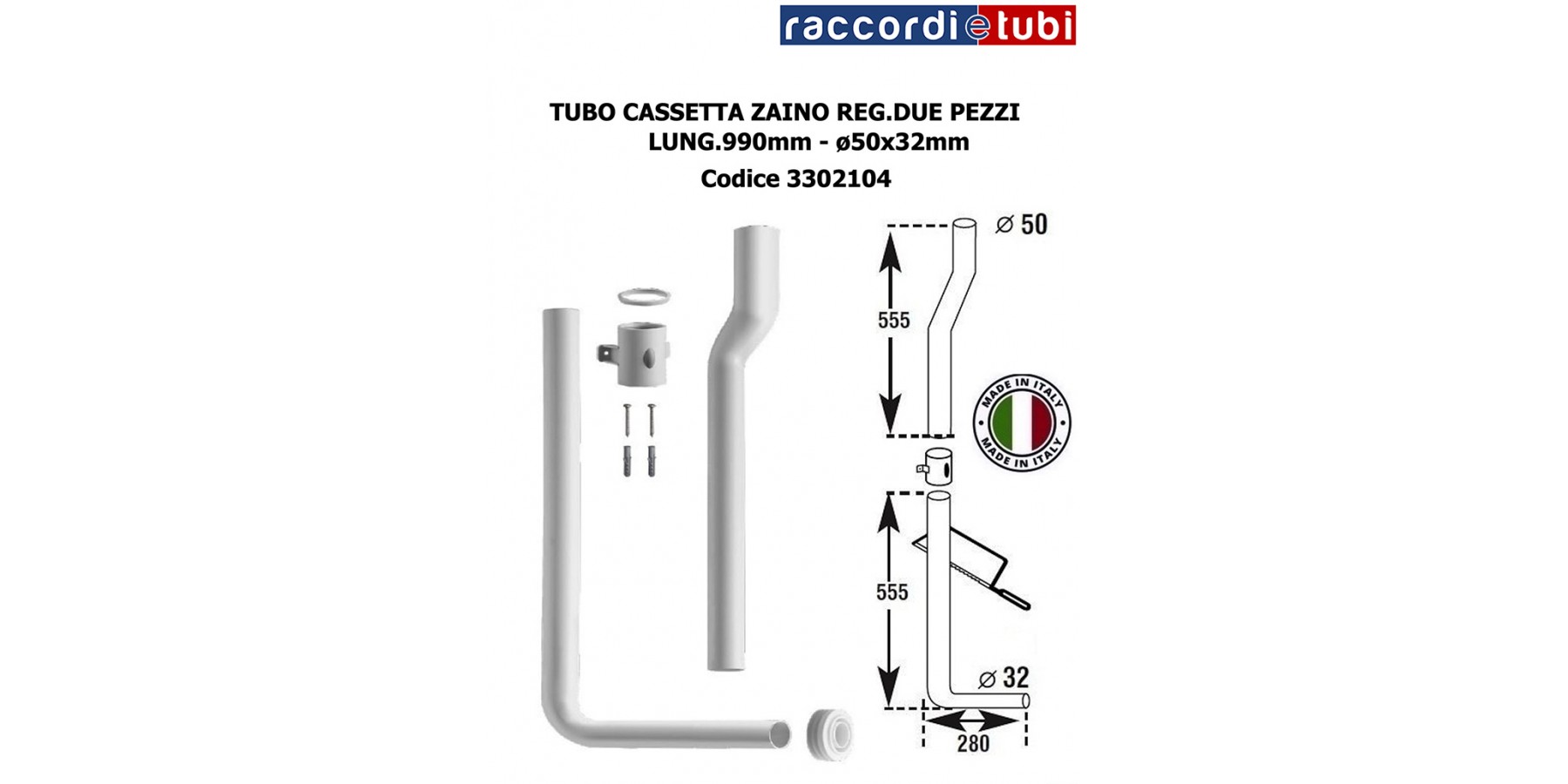 TUBO CASSETTA ZAINO REGOLABILE DUE PEZZI 1100X280mm Diametro 50x32mm