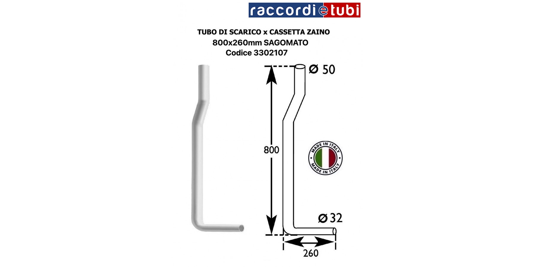 TUBO DI SCARICO PER CASSETTA ZAINO 800X260mm DIAMETRO 50X32