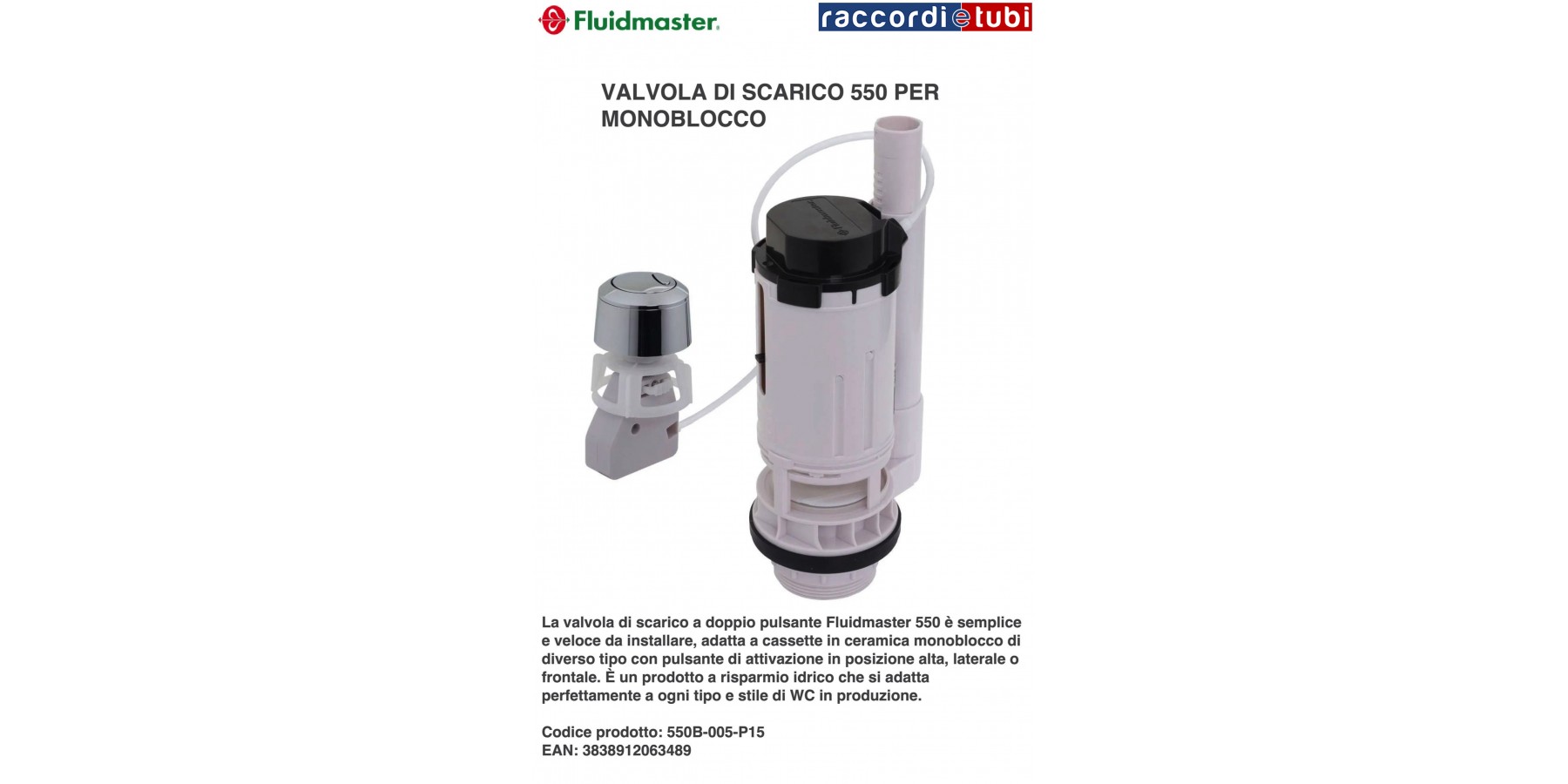 - Facilmente attivabile con doppio pulsante di scarico