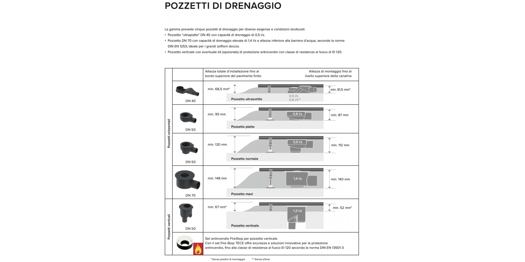 • Inserto piastrellabile "plate"/"plate II": 0,7 l/s; 0,8 l/s