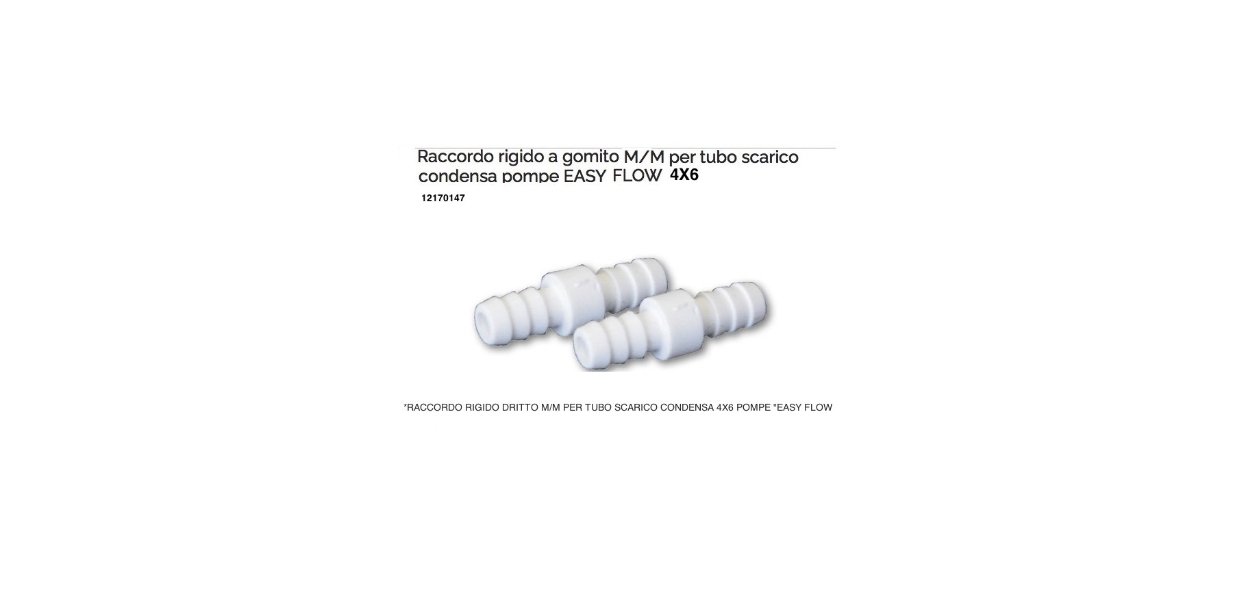 12170147 RACCORDO RIGIDO DRITTO M/M PER TUBO SCARICO CONDENSA 4X6 POMPE "EASY FLOW"