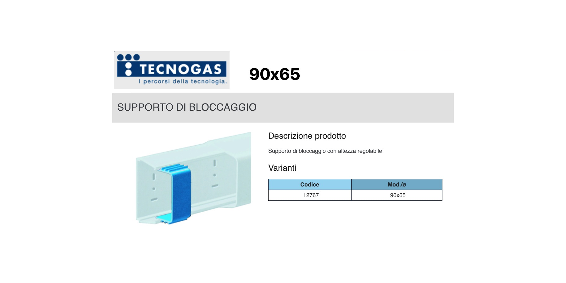 SUPPORTO DI BLOCCAGGIO mm.90x65 PER CANALINA SONIA