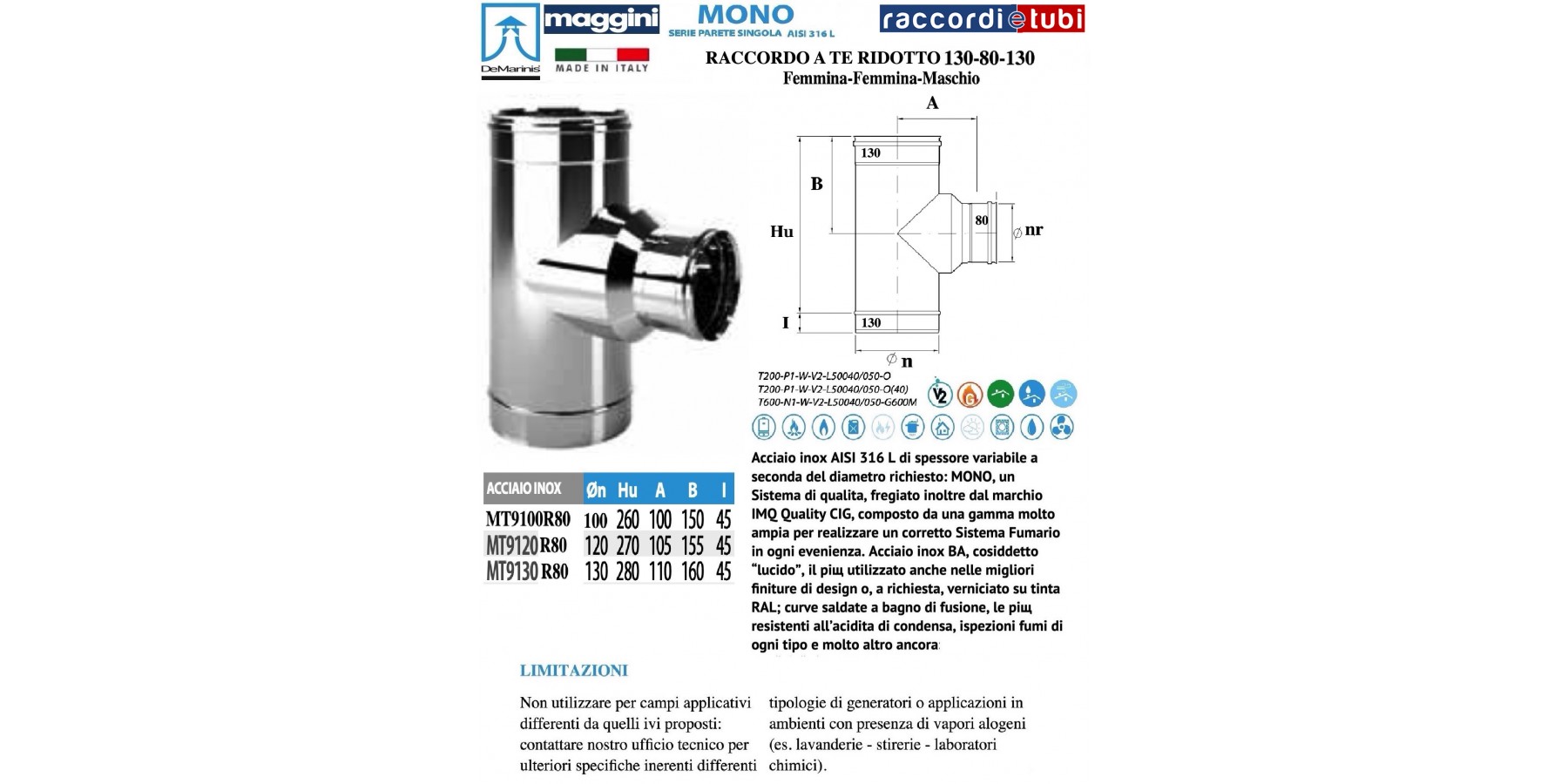 Acciaio inox AISI 316 L di spessore variabile a seconda del diametro richiesto: MONO, un Sistema di qualità, fregiato inoltre dal marchio IMQ Quality CIG, composto da una gamma molto ampia per realizzare un corretto Sistema Fumario in ogni evenienza. Acciaio inox BA, cosiddetto “lucido”, il più utilizzato anche nelle migliori finiture di design o, a richiesta, verniciato su tinta RAL; curve saldate a bagno di fusione, le più resistenti all’acidità di condensa, ispezioni fumi di ogni tipo e molto altro ancora: chiedi ai nostri uffici maggiori informazioni.