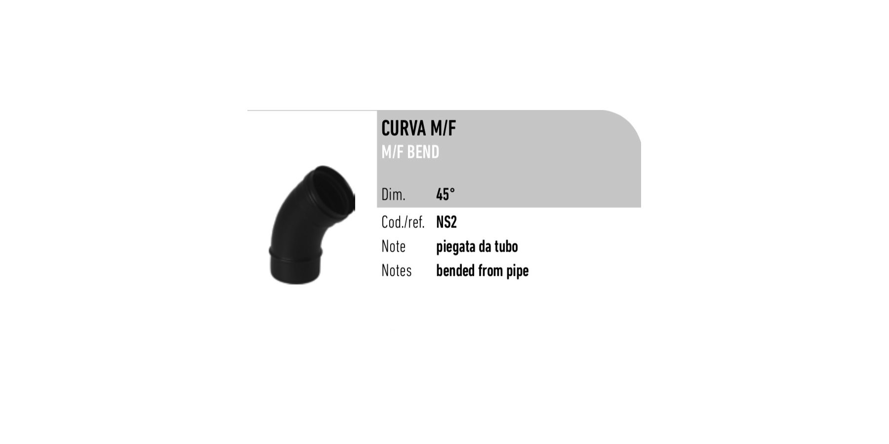 CURVA IN ACCIAIO INOX ESTERNAMENTE DI COLORE NERO DIAM.80 a 45°
