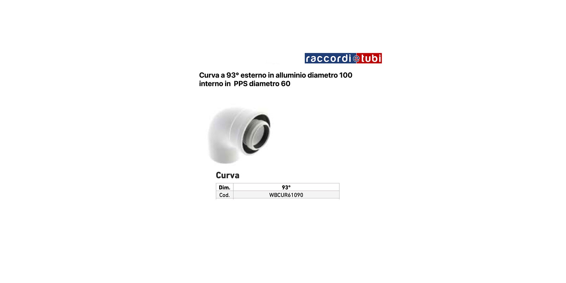 CURVA COASSIALE PER CALDAIE A CONDENSAZIONE ALLUMINIO ESTERNO PPS INTERNO DIAMETRO 100/60 93°