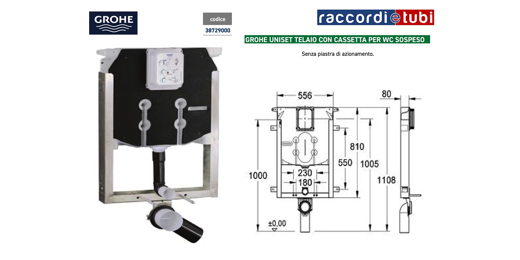 CASSETTA DA RISCIACQUO GROHE UNISET 8 CM PER SANITARI SOSPESI, CON CANOTTO E PLACCA DI COMANDO OPZIONALE, COLORE PLACCA A SCELTA TRA BIANCO O CROMATO, CODICE PRODOTTO 38729000
