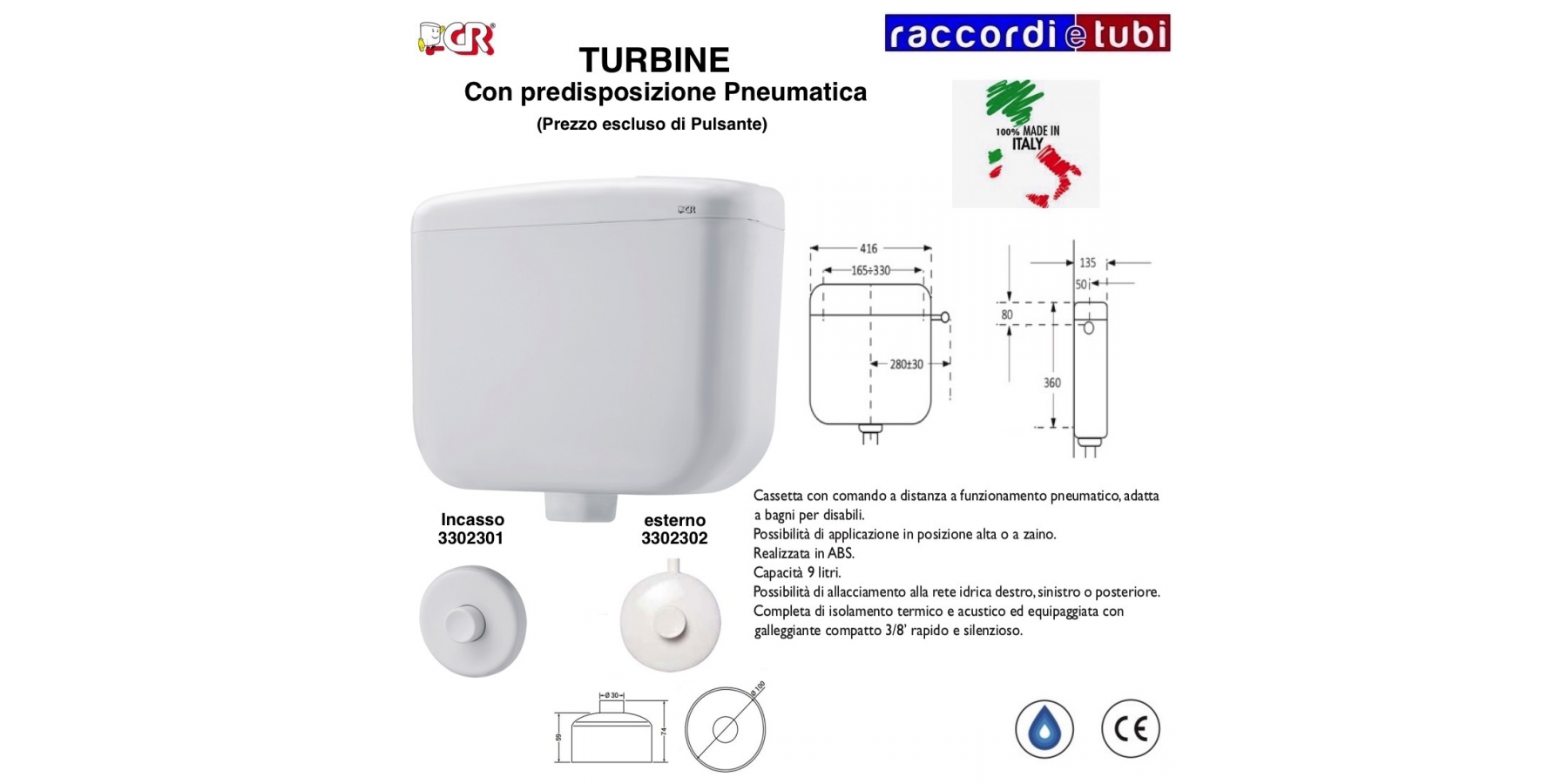 Cassetta di risciacquo per WC per installazione a zaino o alta